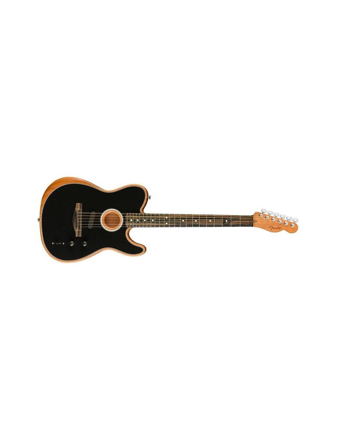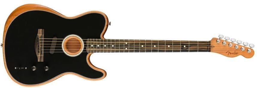 Fender Acoustasonic Telecaster Acoustic Guitar color BLACK. The Fender Acoustasonic Telecaster is a 6-string electrified acoustic guitar. Technical features include hollow telecaster-inspired mahogany body, solid sitka spruce top, mahogany neck with Modern “Deep C” profile, ebony fingerboard, radius 12”, 22 narrow tall keys, Under-Saddle Piezo/Internal Body Sensor/N4 Magnetic amplification, Master Volume controls, “Mod” Knob, 5-Way Switch. Bag included.