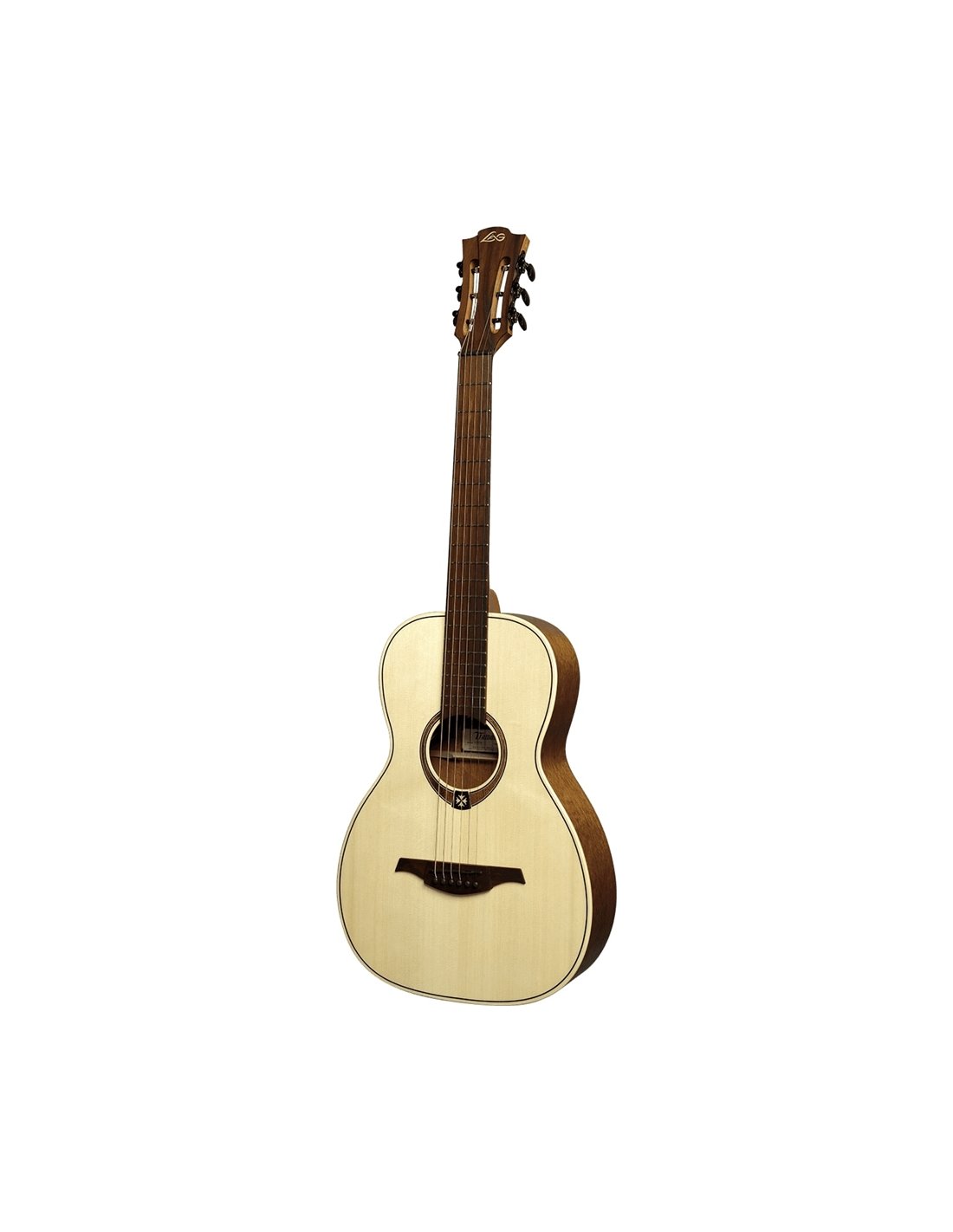 Parlor body - Engelmann spruce solid top - Khaya back and sides - Mahogany handle Brownwood fingerboard and bridge - 350 mm radius - 650 mm scale - 46 mm nut and Graphite saddle - - Black Satin Hardware - Satin Finish - Die Cast Mechanics - Stage-Blade Preamp