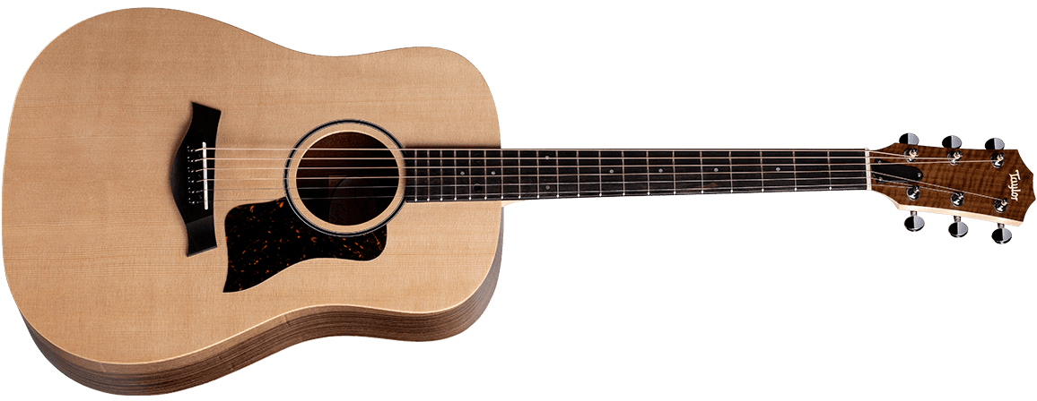 Taylor BB-Te Big Baby Walnut Acoustic Guitar. The Taylor Big Baby BB-Te is a 6-string, Dreadnought type electrified acoustic guitar. Soundboard in solid Sitka spruce, walnut back and sides. Maple neck with Ebony fingerboard. The electronics consist of the Taylor ES-B system with Volume controls, three-band EQ and integrated tuner. Chrome-plated mechanics. Soft case included.