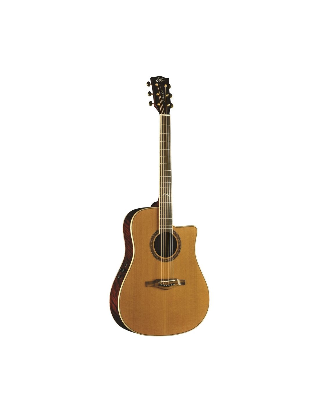 The MIA D400ce is Eko Guitars' electrified acoustic guitar, amplified with the Fishman Flex Blend system. It comes in D shape, missing shoulder with Solid Cedar Top, sides and bottom in 3-layer Laminated Ovangkol, Okume neck and Santos fingerboard. Ideal for the guitarist who does live activities and in the recording studio.