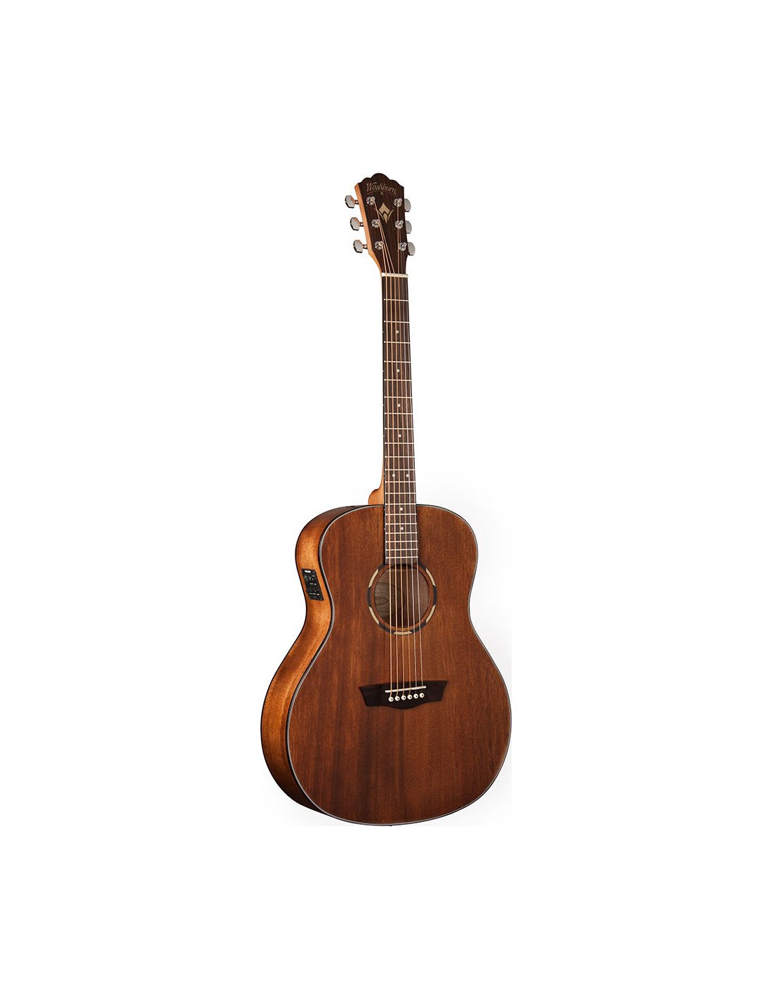 Orchestra Electrified Acoustic Guitar, Solid Mahogany Top, Mahogany Back and Bands, Fishman Presys II 301T Preamp, Natural Color The Woodline O12 SE is an Orchestra-shaped electrified acoustic guitar with solid mahogany top and walnut binding; a mix of elegance, musicality and convenience. A selected quality solid mahogany soundboard with “Cathedral Peak” Scalloped-X reinforcements, combined with mahogany back and sides, results in a tonally versatile, rich, robust and harmonic guitar at the same time. The walnut binding adds a touch of first-class elegance normally found on handmade instruments. The properties of the Graph Tech® NuBone nut and saddle maximize the tone and character of the guitar. The Fishman® Presys II 301T preamplifier creates a natural acoustic sound in performance situations. SpecificationsShape: OrchestraTop: Solid MahoganyBack/Bands: MahoganyManic: Satin MahoganyTruss Rod 2 VietKeyboard: OvangkolRosette: Washburn parquet Inlays: DotsReinforcement: Cathedral Peaked Scalloped-XPonte: OvangkolNut: Graphtec NuboneMechanics: Die-cast ChromePreamp: Fishman Presys 301tNumber of keys: 20 Tasloped-XPonte: OvangkolNut: Graphtec NuboneMechanics: Die-cast ChromePreamp: Fishman Presys 301tNumber of keys: 20 Tasloped-XPonte: OvangkolNut: Graphtec NuboneMechanics: Die-cast ChromePreamp: Fishman Presys 301tNumber of keys: 20 Tasloped-XPonte: OvangkolNut: Graphtec NuboneMechanics: Die-cast ChromePreamp: Fishman Presys 301tNumber of keys: 20 TAS5/16” Color: NaturalFinish: GlossyStrings: D'Addario EXP16