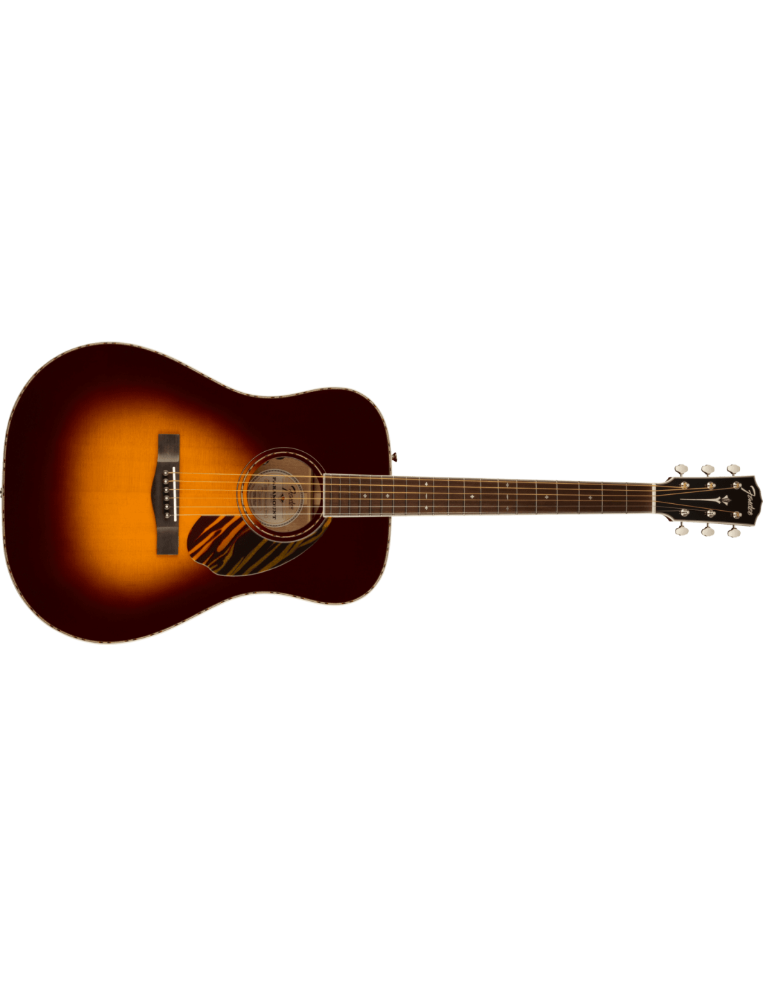Fender PD-220E Dreadnought 3-Color Vintage Sunburst Acoustic Guitar. The Fender PD-220E Dreadnought is a 6-string electrified acoustic guitar. Technical features include: Mahogany neck with C profile and Ovangkol fingerboard, 16" radius and 20 frets. The body has a solid Sitka spruce board, with a solid Mahogany back and sides. The Fender/Fishman Sonitone Plus electronics has volume and balance controls between the bridge and body pickups.
