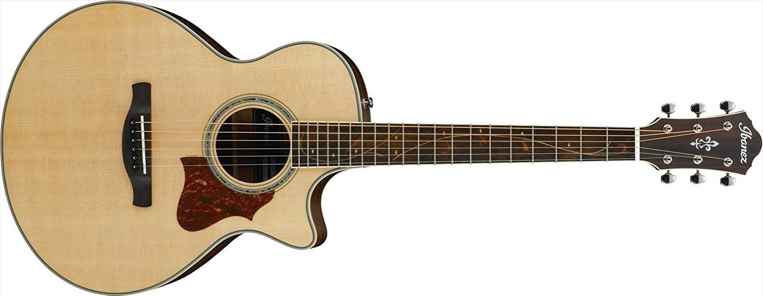 IBANEZ AE205JR-OPN is an electrified AE series acoustic guitar with solid Sitka spruce top, mahogany back and sides, satin mahogany neck, Ovangkol fingerboard with 20 frets and decorated inlays, white dots and Open Pore Natural finish. The electronics are equipped with Ibanez Custom Electronics preamp with Ibanez T-bar piezo-electric tuner and pickup. It also has a Thermo Aged bridge in Ovangkol with bone bridge and Chrome Die-cast mechanics