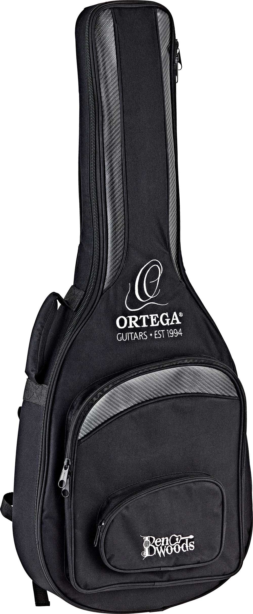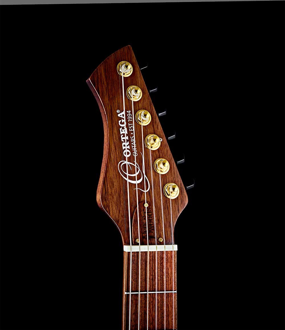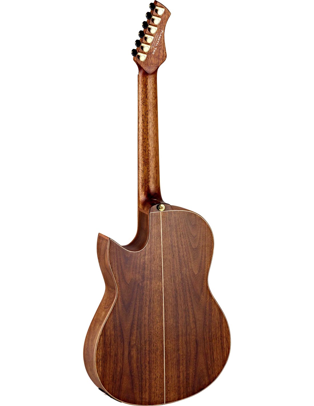 FLAMETAL ONE, Ben Woods signature 6-string electrified classical guitar. Slim body (72/75mm) in walnut with laser-engraved image of the 'snake and eagle', without hole, mahogany handle with double truss rod, solid spruce top, fingerboard and wooden bridge. Natural glossy finish Inverted 'metal' style headstock and 'Florentine' cutaway style. Mount Savarez 510CJ strings. Golden mechanics. Classic blend Fishman/Ortega electronics with XLR and jack outputs. Includes double pickguard and signature bag.Dimensions in cm: 110 x 38 x 71. Weight 19.32 kg