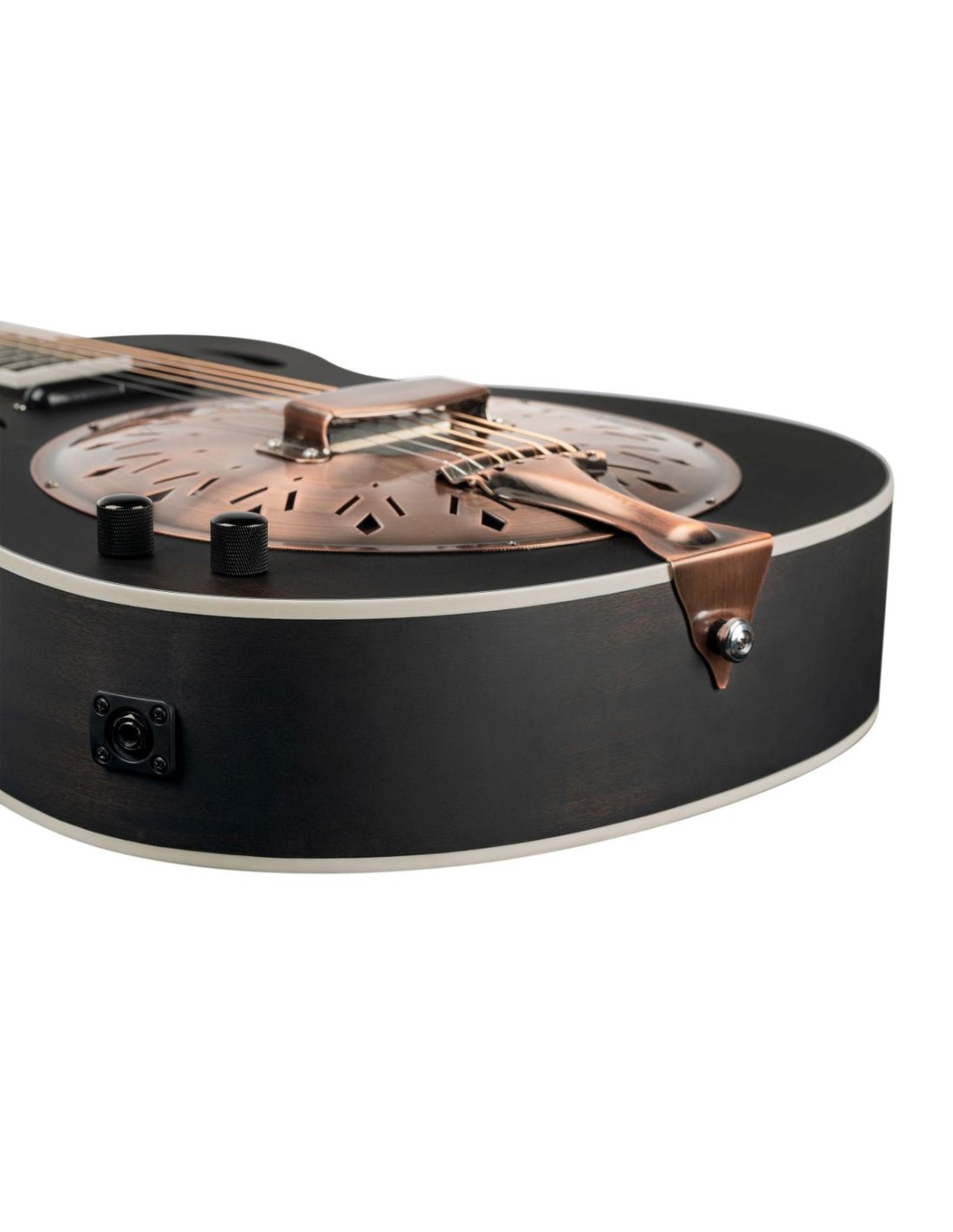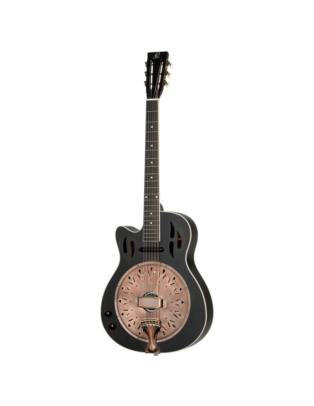 'Cutaway Mahogany Distressed Satin Black Amplified Resonator Guitar. The Americana series blends traditional looks with modern features, just like its musical roots. Finishes such as Distressed Satin Whiskey Burst or Distressed Satin Denim emphasize its origin. In the Americana series you can find the typical instruments for blues, bluegrass and folk. A characteristic cone resonator integrated into the guitars gives the characteristic twang rich in nuances. Mahogany top, aged satin black finish Mahogany back and sides, aged satin black finish Mahogany handle, aged satin black finish Blackwood fingerboard Maple/ebony bridge Lipstick pickup (passive), volume and tone Resonator: aluminum cone, antique finish 2-way Truss rod Scale: 628mm Head width: 43mm/1.69" Ortega2023 '