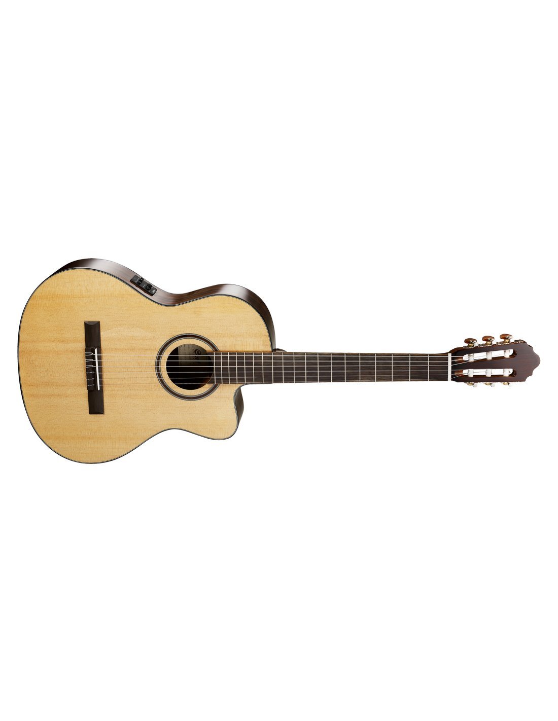 Cort AC160CF Classical Guitar color NATURAL. The Cort AC160CF is a 6-string electrified classical guitar. Technical features include macassar ebony back and sides, spruce top, mahogany neck, rosewood fingerboard, missing shoulder, Fishman Isys Plus Preamp amplification. Bag included.