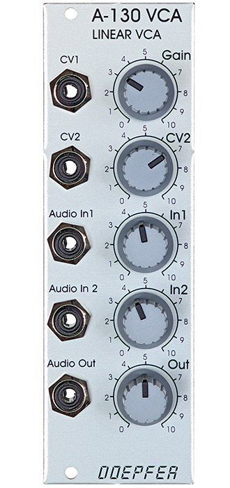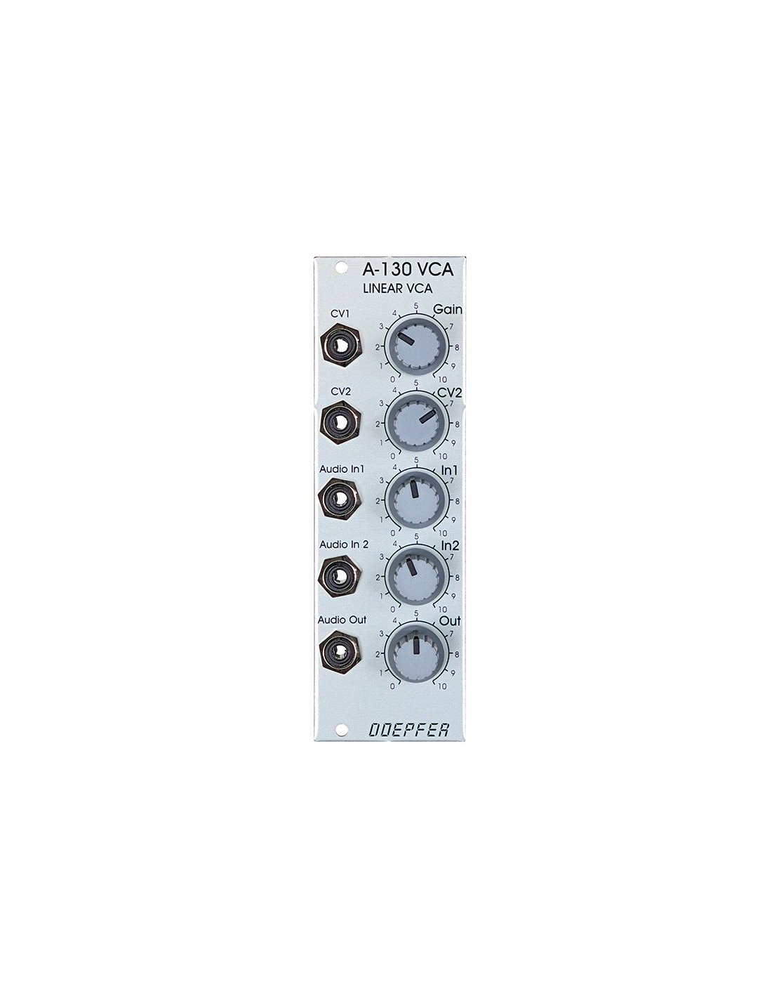 The DOEPFER A-130 VCA LINEAR is a Eurorack module with the VCA function for CV signals (control voltages). The amplification factor of the VCA is proportional to the CV signal applied at the input and to the Gain. Size 8 hp.