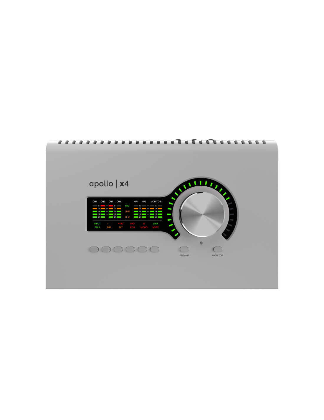 Gen 2 12x18 Thunderbolt 3 Quadcore desktop audio interface for Mac and Windows with Essential package 12 x 18 desktop Thunderbolt audio interface with four Unison microphone preamplifiers, Apollo X Gen 2 superior audio conversion, Auto-Gain, Apollo monitor correction, bass management, QUAD core DSP processing, and a premium software suite for Mac and Windows.Create with the world's most powerful desktop audio interface.Record and mix complex sessions and hear every detail with Universal Audio's new generation of Apollo x4 interfaces. Equipped with very high resolution audio conversion, four Unison™ preamplifiers and QUAD Core DSP, this interface allows you to record in real time through the UAD plug-ins of Neve, Manley, Avalon, SSL and many others. Appreciated by world-renowned artists and producers, Apollo x4 takes your production to a new level thanks to the unmistakable sound and legendary quality of Universal Audio, designed to inspire your next collaborations.Key BenefitsExperience next-generation audio conversion with the widest dynamic range and lowest distortion ever obtained on an ApolloRecord with the analog tones of Unison™ preamps, which allow you to record in real time using authentic emulations of Neve, API, Avalon, Manley, Fender and many othersAccess the complete library of more than 200 DSP and Native UAD plug-ins, including award-winning titles such as Capitol Chambers, Sound City Studios, EL8 Distressor and much moreMix precisely in any environment, even on headphones, thanks to the Apollo monitor correction supported by Sonarworks® * Use Auto-Gain to set levels on multiple inputs in a few seconds, without ever losing an important recordingListen to every detail of the low frequencies in your mixes by adding a subwoofer thanks to bass management Easily configure low cues latency, plug-in scenes and immersive audio monitoring through the UAD Console appReceive thousands of dollars in award-winning UAD plug-ins such as Auto-Tune, Fairchild, Telettronix and many others, choosing between the Essentials+ or Studio+ versions. Universal Audio's most powerful desktop Apollo designed Apollo x4 to expand the iconic Apollo Twin, the interface that revolutionized recording at home and in small studios. With more I/O, unprecedented dynamic range, and superior 24-bit/192 kHz audio conversion — now with advanced monitoring — Apollo x4 brings you the sound of great studios right in your home. Record with legendary preamplifiersWith four Unison™ preamps and two front-facing Hi Z inputs, Apollo x4 allows you to record in real time through preamps and channel plug-ins from Neve, Manley, API and many others, offering the rich analog textures used in the best recordings in history. Mix with authentic analog soundsApollo x4 offers you, right from the start, the tools used in the largest recording studios in the world. In addition to the included Tectronix LA-2A compressors, Pultec equalizers, and Marshall and Ampeg amplifiers, you can access the entire library of more than 200 UAD plug-ins, unlocking hit sounds like Ocean Way Studios, Capitol Chambers and many others. Hear every detail like never before. In its second generation, Apollo x4 is equipped with the highest quality D/A converters ever integrated, now combined with Apollo monitor correction, powered by Sonarworks®. This means that, when you play your audio through a monitor or headphones, you will hear a faithful reproduction of your recordings, without surprises when you switch to the final mix or master. Find your workflow in the UAD Console appAs in an analog studio, where the console is the heart of the workflow, Apollo x4 integrates a powerful digital mixing engine that allows you to control plug-in routing and monitoring. With advanced features such as Auto-Gain, bass management and Plug-In Scenes, finding a workflow that fits your needs becomes simple. A hybrid system designed for your needsCombine Apollo x4's QUAD Core DSP with your computer's native processing to manage complex sessions and articulated plug-in chains — a hybrid workflow that surpasses any configuration based only on native processing.Expand your studio as you growthYou can expand your studio by connecting up to four Apollo interfaces through Thunderbolt, achieving up to 128 premium I/O channels in your DAW. Manage everything directly from your desktop with Apollo x4, so your studio can grow with your music. **Key Features12 x 18 Thunderbolt audio interface with QUAD Core DSP processingFour Unison™ preamplifiers, two Hi-Z instrument inputs, Toslink optical I/O (ADAT or S/PDIF) Two 1/4" monitor outputs, four 1/4" line outputs (ALT 1/2), two 1/4" TRS headphone outputs Apollo X Gen 2 class converters with 24-bit/192 kHz resolution D/A improvement for critical monitoring with 129 dB of dynamic rangeCorrection of main monitors and headphone outputs with Apollo Monitor Correction powered by Sonar/ Works® *Monitor Controller complete with speaker switching and integrated talkback to easily communicate with talentsApp UAD Console updated with Auto-Gain, Plug-In Scenes, subwoofer integration and immersive audio supportThe integrated DSP supports more than 200 UAD plug-ins in VST, AU and AAX 64 formats on all major DAWIncludes up to 50+ UAD plug-ins in Essentials+ or Studio+ editions Compatible with LUNA, Logic Pro, Pro Tools, Cubase, Ableton Live and more**Expandable through Thunderbolt Apollo interfaces or selected models through industry-leading technical support offered free of charge by sound engineer*Available from the fourth quarter of 2024, requires licenses for Apollo Monitor Correction Add-on and SoundID Reference, which can be purchased at Sonarworks.com**For full compatibility information, visit help.uaudio.com.Plug-ins included in Essentials+ EditionChannel Strip & Preamp (6) Century Tube Channel StripCS-1 Channel StripHelios Type 69 Preamp & EQPrecision Channel StripUA 610-A Preamp & EQUA 610-B Preamp & EQ Compressors/Limiter (7) Fairt