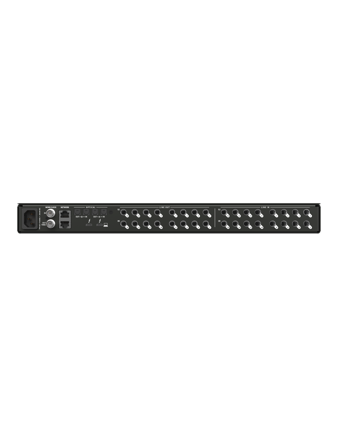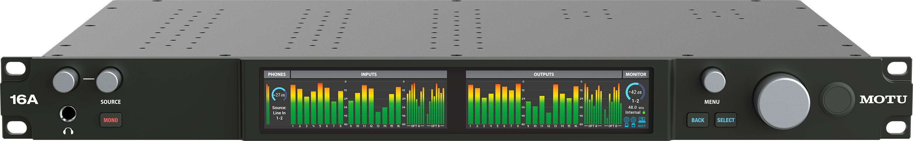 Interfaccia audio Thunderbolt/USB <br /><br />• The world’s first Thunderbolt 4 / USB4 audio interface<br />• 32 x 34 full-rack unit with DSP, mixing, effects, and networking<br />• Luxurious metering with two 3.9-inch 24-bit RGB LCD with precision metering for all I/O.<br />• Superb analog audio performance driven by ESS Sabre32 Ultra™ DAC Technology<br />• Ultra-low latency and proven, high-performance MOTU drivers (~2 ms RTL with a 32 sample buffer @ 96 kHz)<br />• Universal connectivity with included 40 Gbps USB-C cable (compatible with Thunderbolt 3/4, USB4, USB3 and USB2)<br />• 66 simultaneous audio channels (32 inputs and 34 outputs)<br />• DSP-driven 64-input digital mixer with 32 busses and DSP effects (reverb, 4-band EQ, gate, compressor & HPF).<br />• Patchbay routing and splitting with intuitive, virtual patch cords to easily route any source signal to any destination<br />• 2x Gigabit Ethernet ports support AVB daisy-chaining and networking with standard CAT-5/6 cables<br />• 16x 8-channel AVB streams in/out (128 audio channels in/out) with variable stream size (1-8 channels) per stream<br />• Wi-Fi control from CueMix Pro™ app on multiple mobile devices<br />• Network management features (discovery and control for multiple devices on the network)<br />• Precision boost for all analog inputs and trim (cut) for all analog outputs in 1 dB increments<br />• Control room features include Talkback and A/B/C monitor select via CueMix Pro™ software<br />• Flexible headphone output with independent volume control and source select knob.<br />• 16x balanced, DC-coupled 1/4-inch TRS analog outputs with measured 125 dB dynamic range<br />• 16x balanced 1/4-inch TRS analog inputs with measured 120 dB dynamic range<br />• 2x banks of optical digital I/O (16 ADAT channels at 1x sample rates) with optional stereo TOSLink on Bank A<br />• Word clock in/out/thru<br />• DC-coupled TRS outputs can be used to control modular synthesizers from a host DAW using control voltage (CV)<br />• Support for 44.1 to 192 kHz sample rates<br />• 1-rack U form factor built with rugged steel construction<br />• USB audio class compliant for plug-and-play operation on macOS and iOS (no driver required)<br />• Loopback for mixing host software output with live 16A inputs for streaming and podcasting<br />• Flexible front-panel metering with meter views for analog I/O only, digital I/O only and all channels<br />• CueMix Pro™ app to control mixing and settings from your Mac, PC or iOS device<br />• MOTU Performer Lite workstation software included <br />• 100+ instruments (in Performer Lite)<br />• Over 6 GB of included free loops, samples and one-shots from industry leading libraries<br />• Two-year warranty