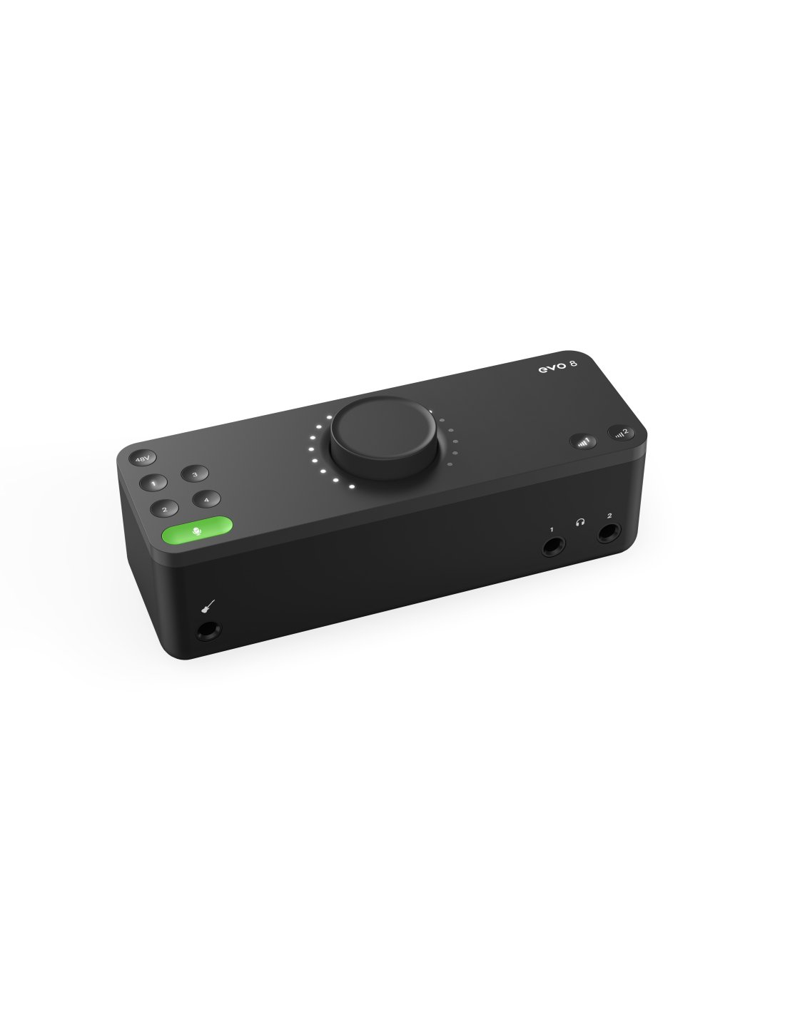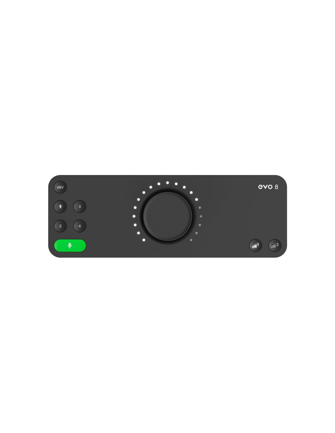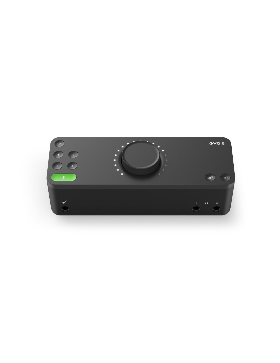 AUDIENT EVO 8. USB 2.0 audio interface with 4 Inputs and 4 Outputs. Technical features include 24 bit/96kHz sample rate, 133 db dynamics, stereo monitor outputs, headphone input on the front panel, +48v phantom power, AKM (AD/DA) converters, Smartgain function that automatically adjusts the signal level. Compatible with Mac, Windows and iOS. It includes free software with dedicated plugins.