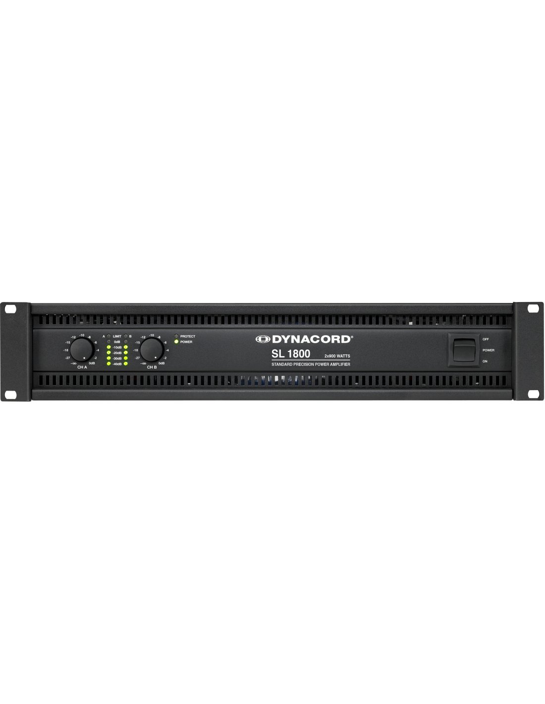 2-channel power amplifier. Class H topology. Stereo mode output power (THD 1%, 1kHz): 2x 550W in 8, 2x 900W in 4, 2x 1,250W in 2. Bridge-mode output power (THD 1%, 1kHz): 1x 1,800W in 8, 1x 2,800W in 4. Frequency response: 10Hz to 40kHz (±1dB). Gain: 32 dB. Input sensitivity: +5.1 dBu. Maximum RMS output voltage range: 78.8 V. Power consumption at 4A, maximum output power: 700W. It incorporates gain control and indicators (LEDs) for output level, limiter, protection and power supply on the front side. Protection circuits for: overheating, overload, short circuit, EMF return, peak current, inrush current, HF and DC output and soft start. Signal input/output via XLR3. Load output with Speakon connector. Dimensions (W x H x D), mm: 483 (19') x 88.1 (2U) x 421.5. Weight: 16.3 kg