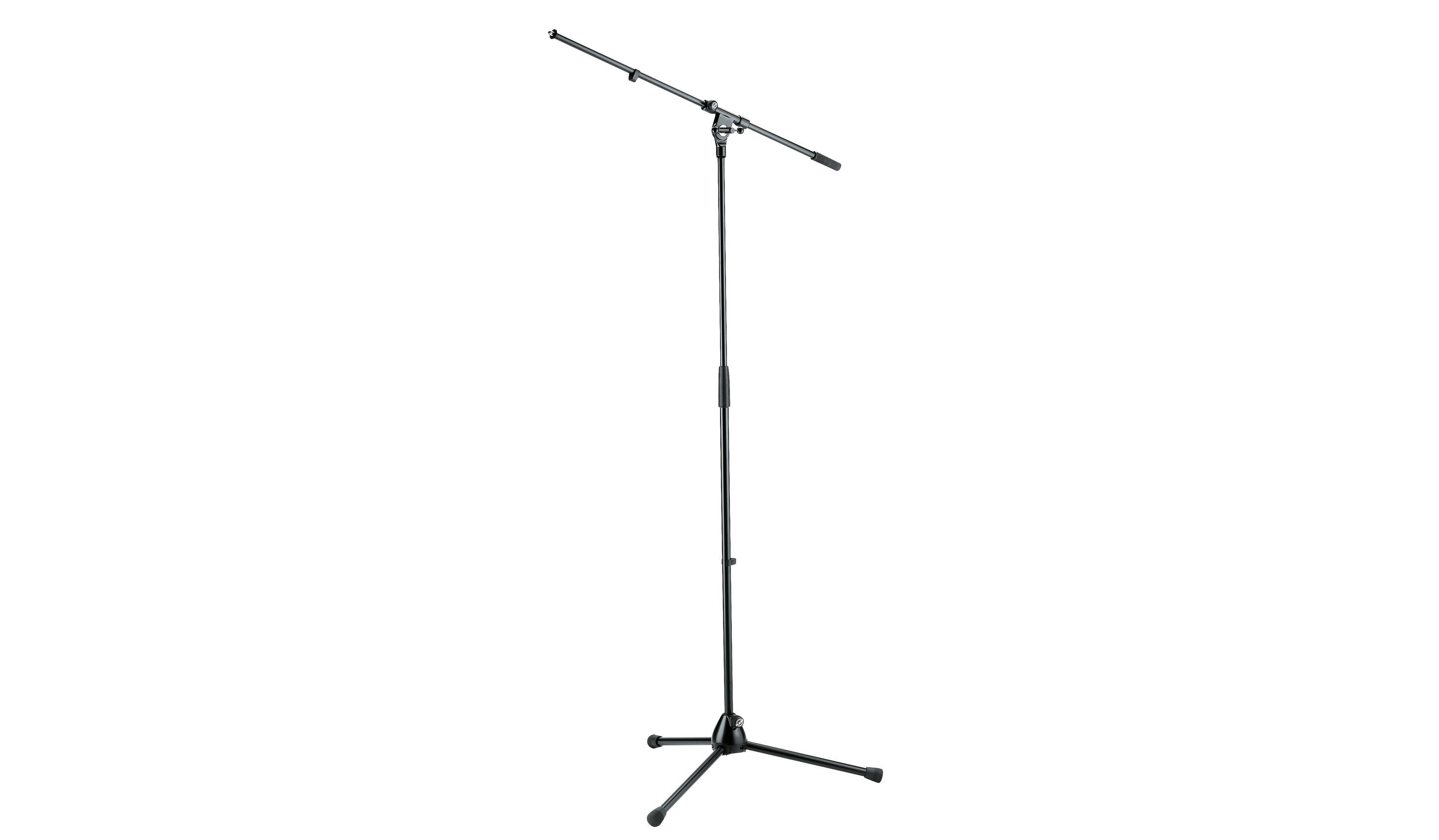 The KONIG & MEYER 21020-300-55 BLACK MICROPHONE STAND is a foldable microphone stand with giraffe, adjustable height 900-1605 mm, giraffe length 840 mm, metal tripod base, black color. Weight 3.1 Kg.