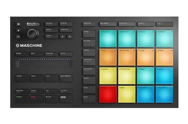 NATIVE INSTRUMENTS MIKRO MK III MACHINE. Groove Box for laptop music production with 16 backlit performance pads, dual-touch Smart Strip, Sequencer, digital effects sampler with Hands-on control, step sequencing, real-time recording, note repeat, slicing, auto-mapping, Automation recording and Step automation editing, drag-and-drop sample export, dedicated MIDI mapping software, MIDI