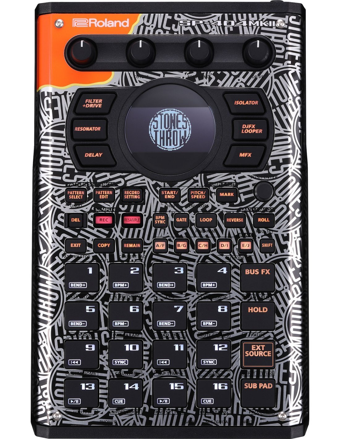 ROLAND SP-404MKII-ST is a Stones Throw Records limited-edition portable sound sampler with 10 banks of original music created by Kiefer, Sudan Archives, Mndsgn, J.Rocc and DJ Harrison. The technical features include, OLED display, 17 RGB pads sensitive to dynamics, 16 patterns and 16 samples in each sound bank, integrated digital effects including Vinyl Simulator, DJFX Looper, Lo-fi effects, Cassette Simulator and Resonator, 32-voice polyphony, integrated 16Gb memory, 3 control knobs