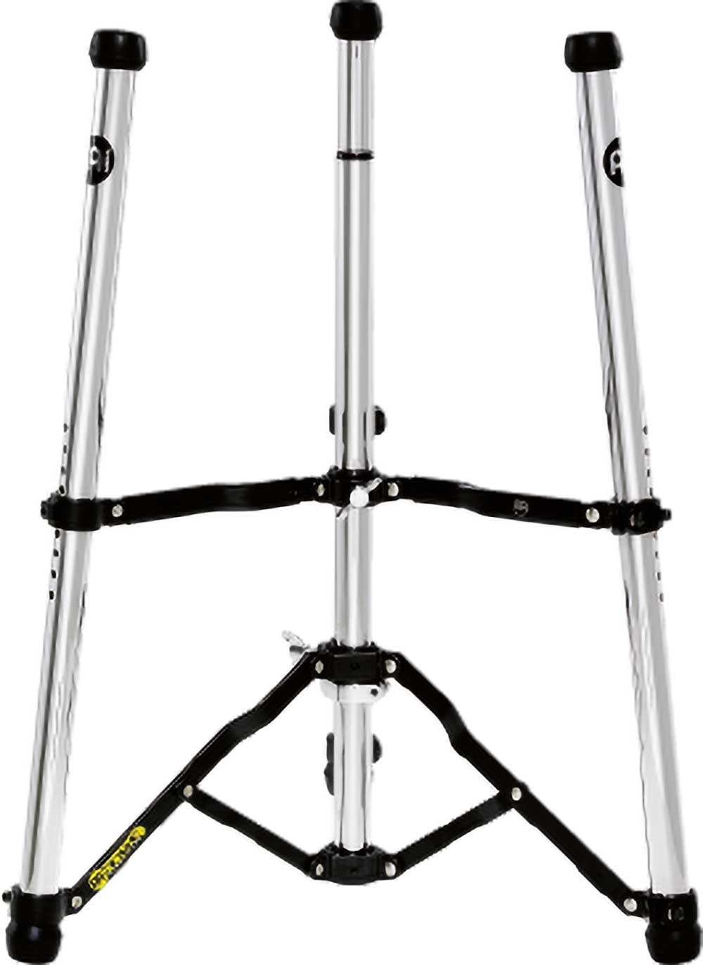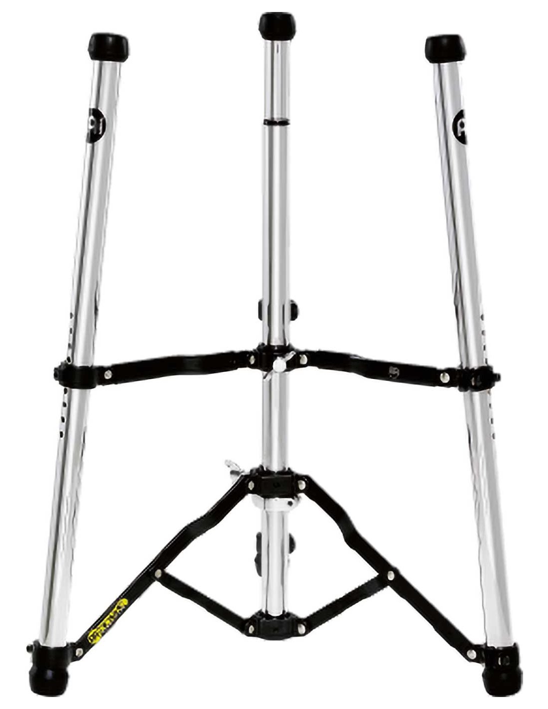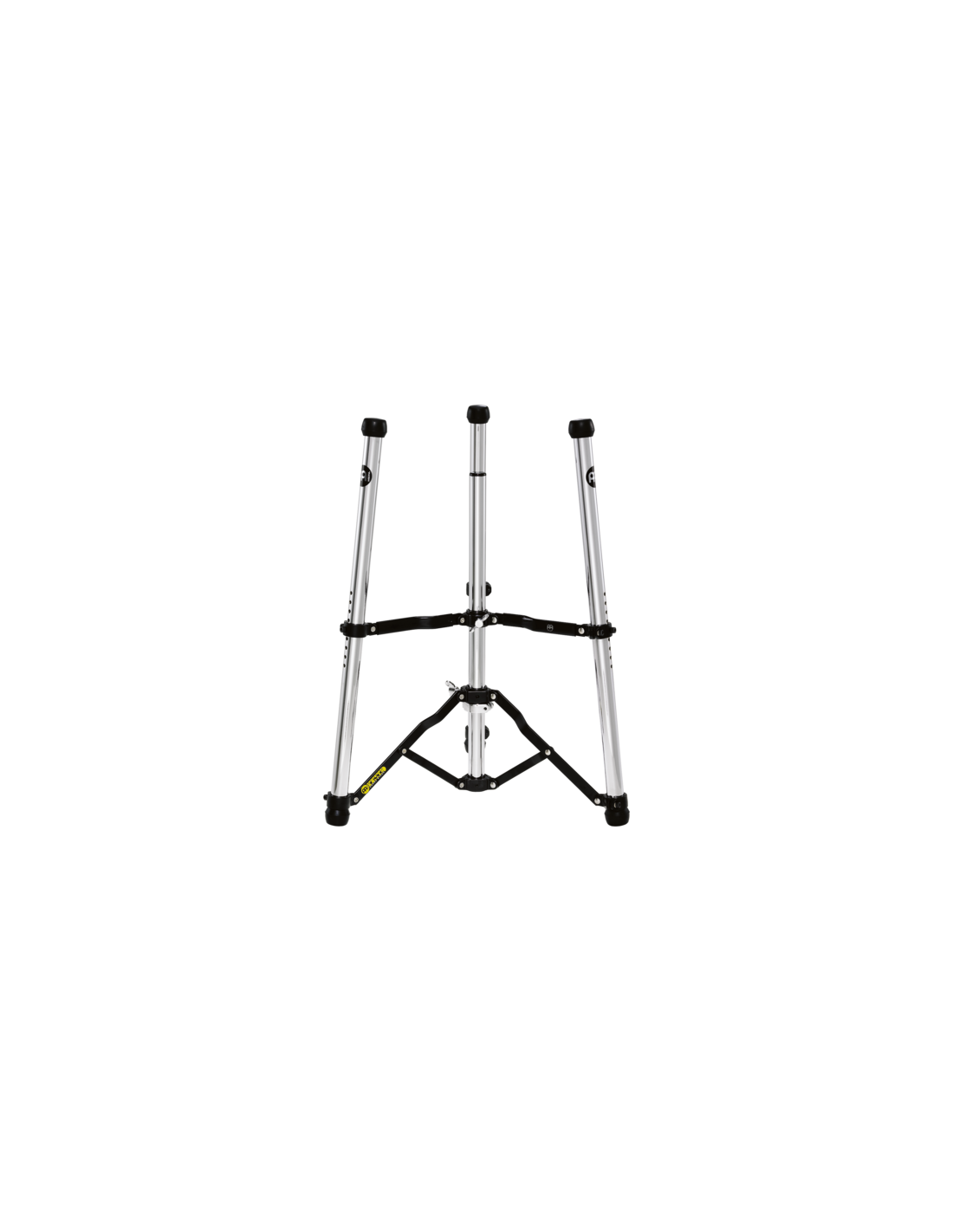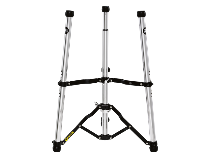 'TMC-CH conga support. The patented holder is unique in function and form. It has been specially developed for professional use and offers the best fastening and the best possibilities. The conga is perfectly placed on top of the diagonal rubber protection. These rods are adjustable in height and can be optimally adapted to each musician. Once the height has been adjusted, the Conga is fixed with three stable legs. This lightweight stand can be carried comfortably and folds up completely to save space.