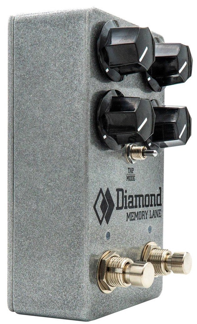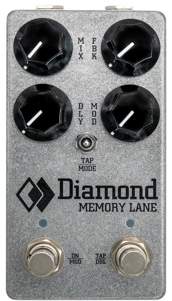 DIAMOND MEMORY LANE is a stompbox guitar Delay effect with digital Bucket Brigade Delay (dBBD) technology. Technical features include 3 Delay modes selectable Modern/Warm/Vintage through a dedicated command, Feedback, Mix, Delay, Modulation controls, 2-way switch for Tap/Mode selection, footswitch for activating True Bypass, fottswitch for Tap Tempo