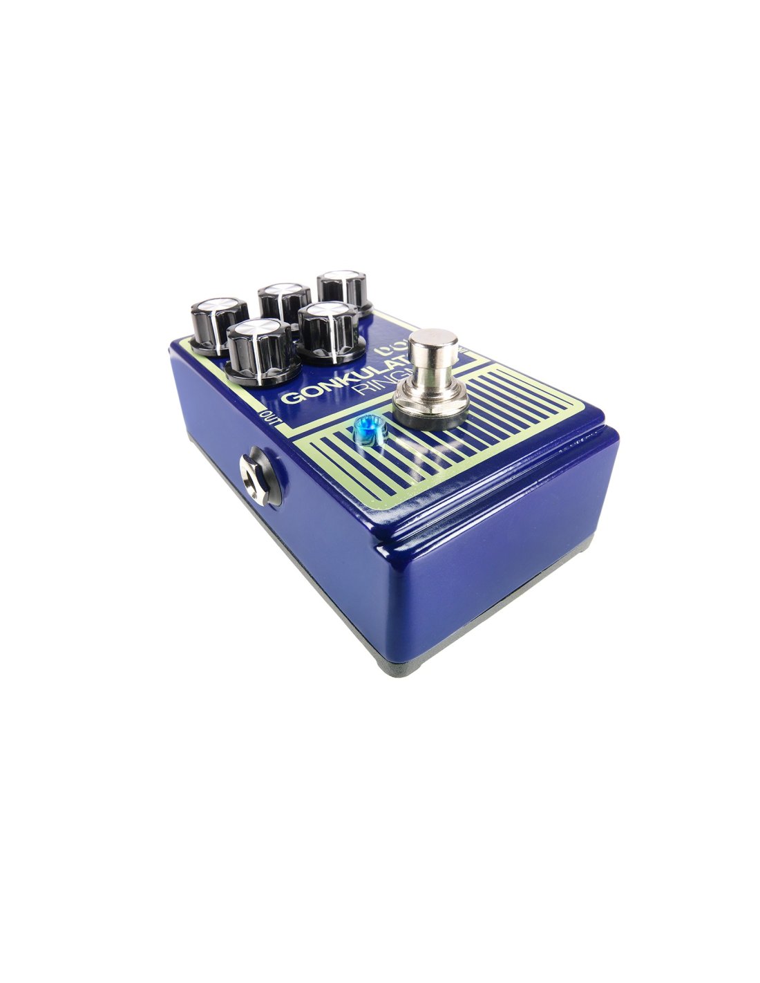 Robust and versatile ring modulator pedal. It allows you to create a huge variety of unique modulation tones. For electric guitar, bass and keyboards. Updated version of the pedal from the 90s. Completely analog. Flexible carrier signal control, allowing you to adjust ring modulation. From soft modulations to more atonal and dissonant sounds. It also has an aggressive distortion effect, which can be used together or separately from the modulation. Independent controls: gain, distortion, output, frequency and ring. True Bypass. Blue status LED. Metal frame Mono input/output jack, 9v battery or optional power supply. Dimensions: 11.9 x 6.7 x 5.7 cm. Weight: 281 g