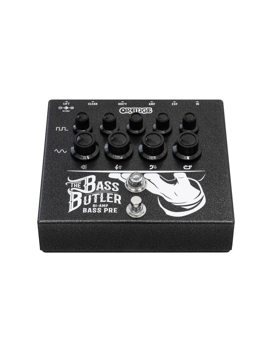 Bass Butler is your bass rig in a pedal. Splitting the signal at the input, the Bass Butler provides two parallel, completely separate analog signal chains, just like real bi-amp rigs. Low channel (clean). Simple and efficient compression, bass, treble and volume controls. Balanced DI output with cabinet simulation. Guitar channel (distorted). Volume, midrange, bass, treble and gain controls. Balanced DI output with cabinet simulation and expression pedal jack with extra control over the input gain. Two individual XLR outputs. Ground Lift. 1/4” output jack for pre-simulator cabinet mixing. 18v DC power supply for high headroom. Made in the UK Dimensions: 17 x 8.5 x 16.5 cm. Weight: 1.29 Kg