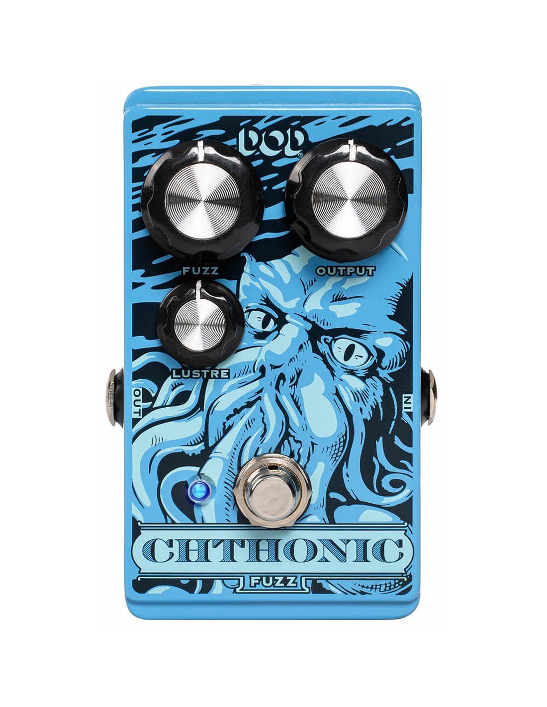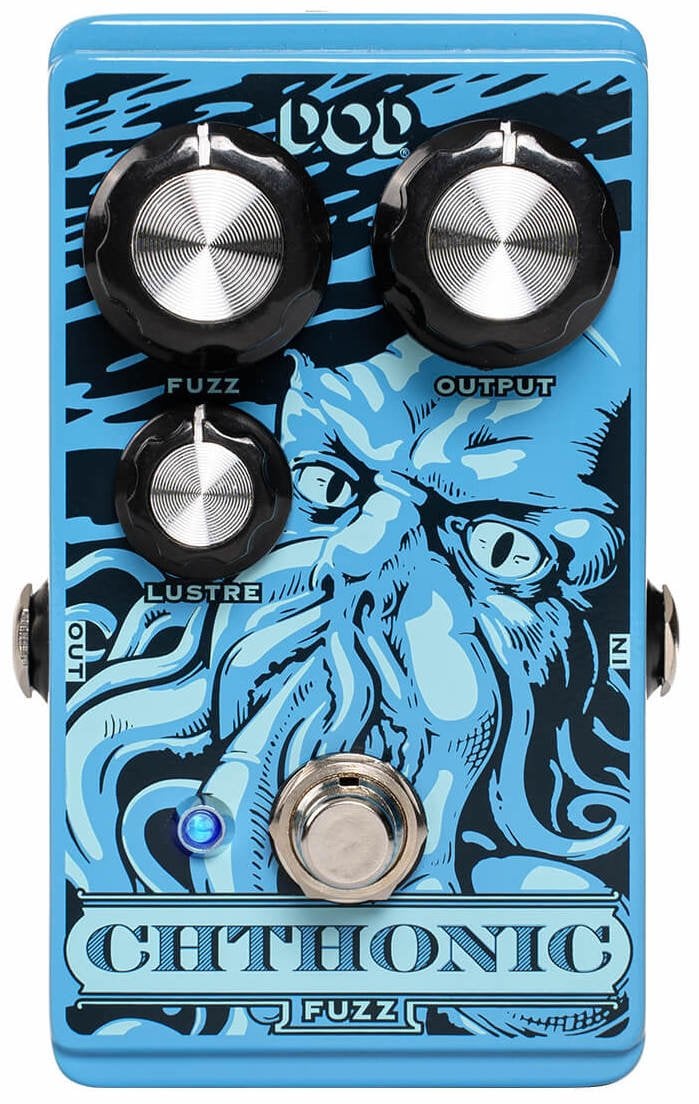 Basato su un circuito fuzz a manopola singola degli anni '70, è stato aggiunto un sottile controllo di tono (Lustre), seguito da un controllo di guadagno separato (Fuzz). Il risultato è un fuzz semplice ma potente, con un'atmosfera cupa e terrosa. La coppia di transistor 2N2222 consente di ripulire il suono abbassando il volume della chitarra. Il Chthonic Fuzz è progettato per essere il primo nella catena del segnale. Questo gli consente di interfacciarsi con i pickup e il controllo del volume della chitarra. La grafica Kraken/Cthulhu del Chthonic è per gentile concessione dello stesso artista che ha realizzato la grafica del Carcosa Fuzz.