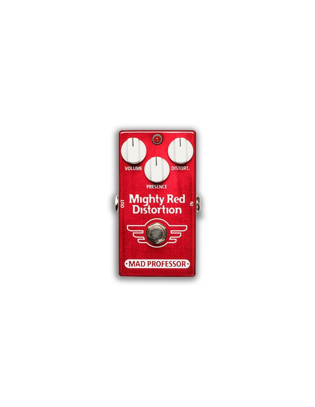 Distortor guitar pedal The Mighty Red Distortion is a high-gain distortion pedal, which has been modeled after compressed gain sounds in the 80s style. It's extremely easy and fun to play because its texture is adjusted to give clarity and definition even to strong distortions. The gain range also allows for low distortion sounds and pairing with other pedals, where an overdrive can pre-drive the effect for extreme, highly focused sounds. To achieve these gain levels with their impressive signal-to-noise ratio, we didn't use any noise gate or expander, but special amplification techniques and extremely low noise amplification stages, which result in natural decay and a fairly high current consumption for a distortion pedal. The Presence control was designed to control the treble, but not to influence the upper midrange, so as to get the exact treble you want. Controls: Volume: Set the signal level distorted. DISTORTION: Controls the amount of distortion.PRESENCE:Controls high frequencies, while not affecting the mid-upper range, so you can adjust sounds from warm and sweet to sharp lead sounds.Technical Specifications: True BypassPower supply: 6F22 9 V battery or power adapter Current consumption at 9V: 10.6mAvoltage range: 7.5V-18VMax gain: 62dB Max output: 1V pk-pk or 500mV rms Signal-to-Noise Ratio: about 96dB