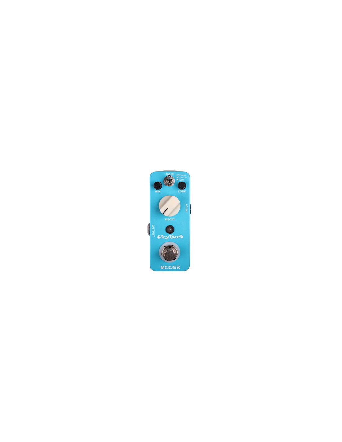 Mooer SkyVerb Guitar Pedal. The Mooer SkyVerb is a digital guitar pedal reverb equipped with a 32-bit DSP chip, true bypass. It has Mix, Tone, Decay controls and a 3-position mini switch to select Studio/Church/Plate modes