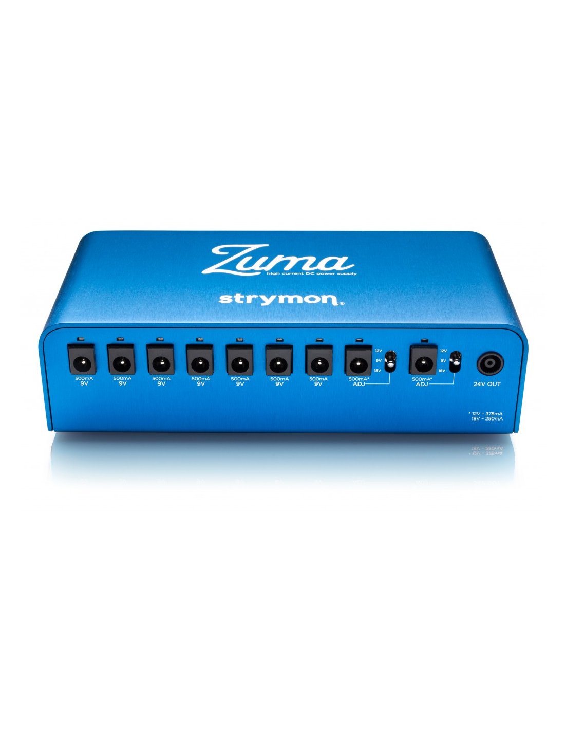 Strymon Zuma R300 Power Supply pedal power supply. The Strymon Zuma R300 Power Supply is the most powerful, thinnest and most technologically advanced power supply for pedals of this size. It has 5 fully isolated outputs, including 4 9V/500mA and 1 with the possibility to choose between 9V DC/500mA, 12V DC/375mA, 18V DC/250mA, 24V Thru output to connect another Strymon Ojai. Includes 5 connection cables