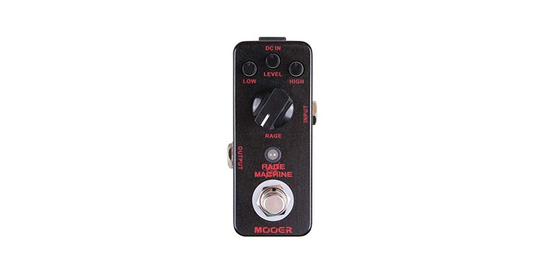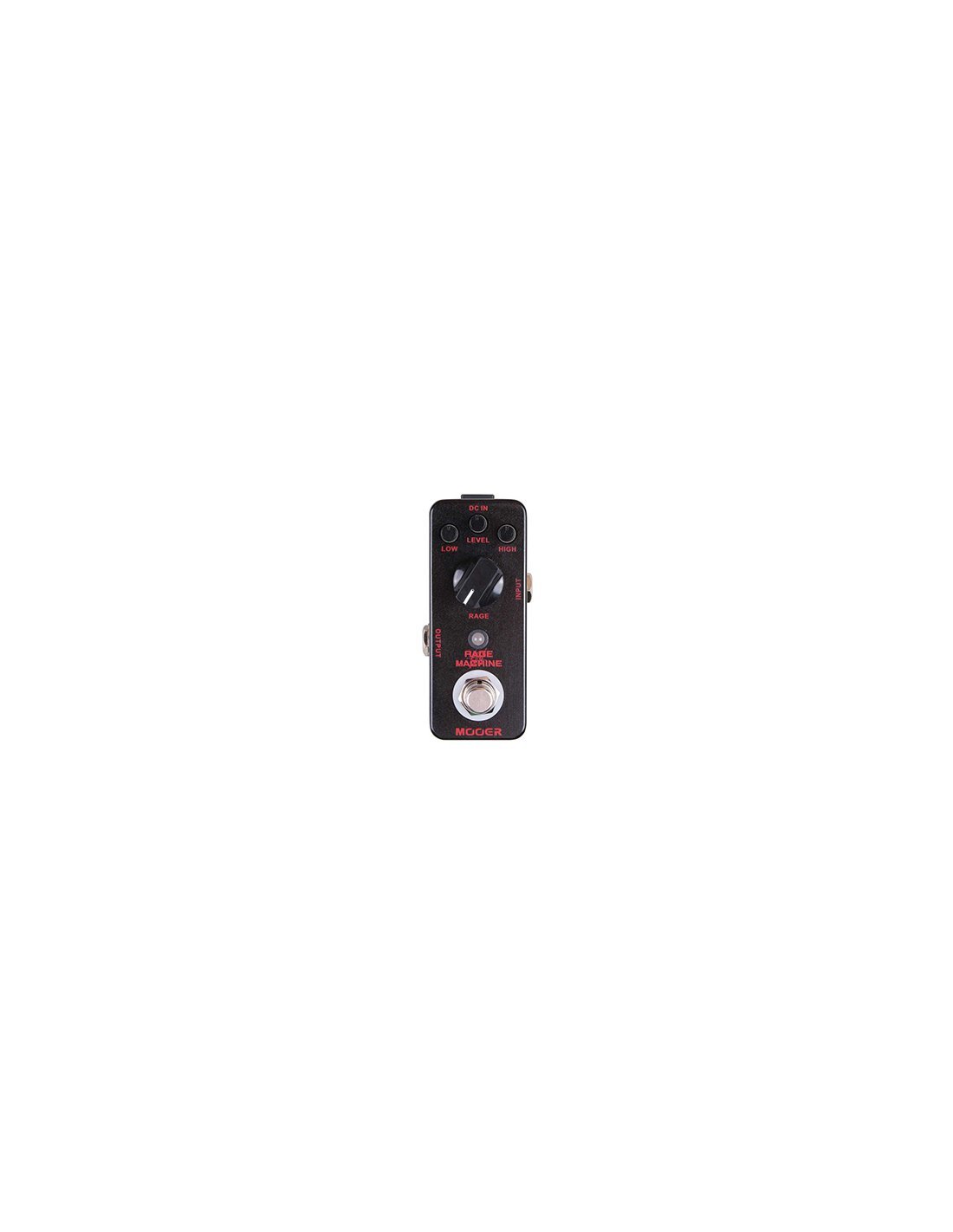 Mooer Rage Machine Metal Distortion Guitar Pedal. The Mooer Rage Machine Metal Distortion is a true bypass guitar distortion pedal. It is equipped with Level, Low, High and Rage controls.