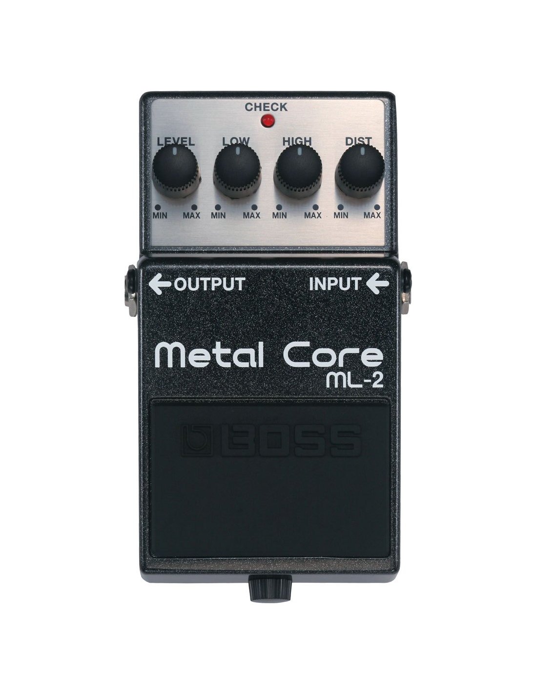 Boss ML2 Metal Core Guitar Pedal. The Boss ML2 Metal Core is a heavy pedal guitar distortor. It is equipped with Level, Low, High, Dist controls.