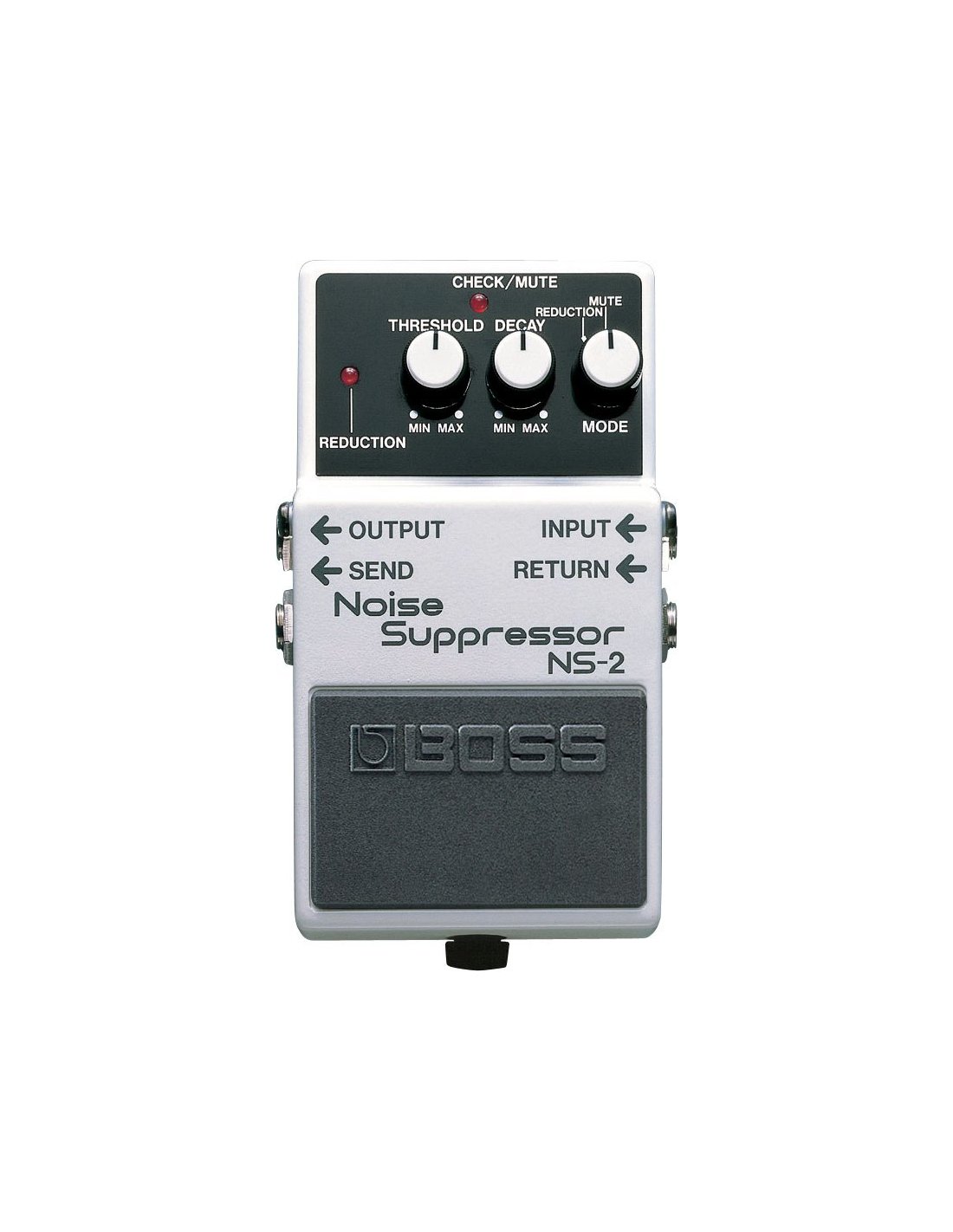 Boss NS2 Noise Suppressor Guitar Pedal. The Boss NS2 Noise Suppressor is a guitar pedal that serves to eliminate background noise and hum while safeguarding sound quality. It is equipped with Threshold, Decay, Mode controls (to select Reduction/Mute modes