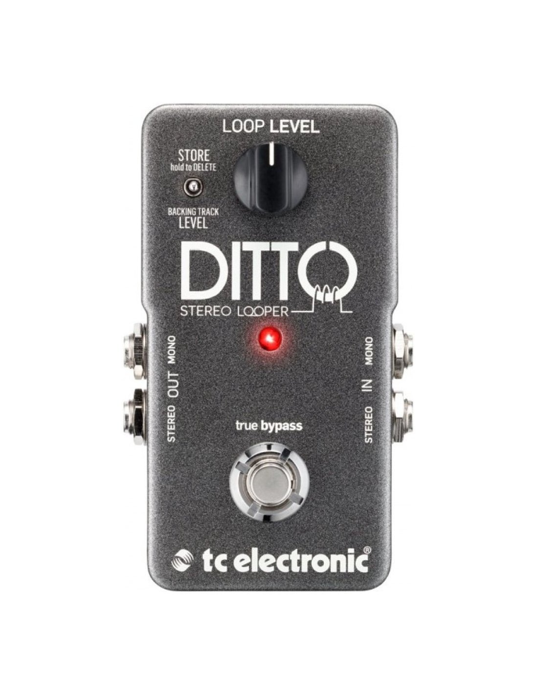 TC Electronic Ditto Stereo Looper Guitar Pedal. The TC Electronic Ditto Stereo Looper is a guitar pedal looper, true bypass. It is equipped with stereo inputs and outputs for greater configuration flexibility (it is possible to connect 2 instruments), 5 minutes of recording with unlimited overdubs, exports loops to PC or Mac to work with DAW, imports complex backing tracks into the looper
