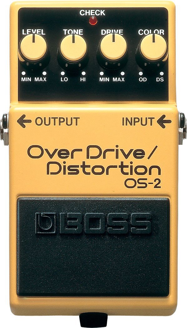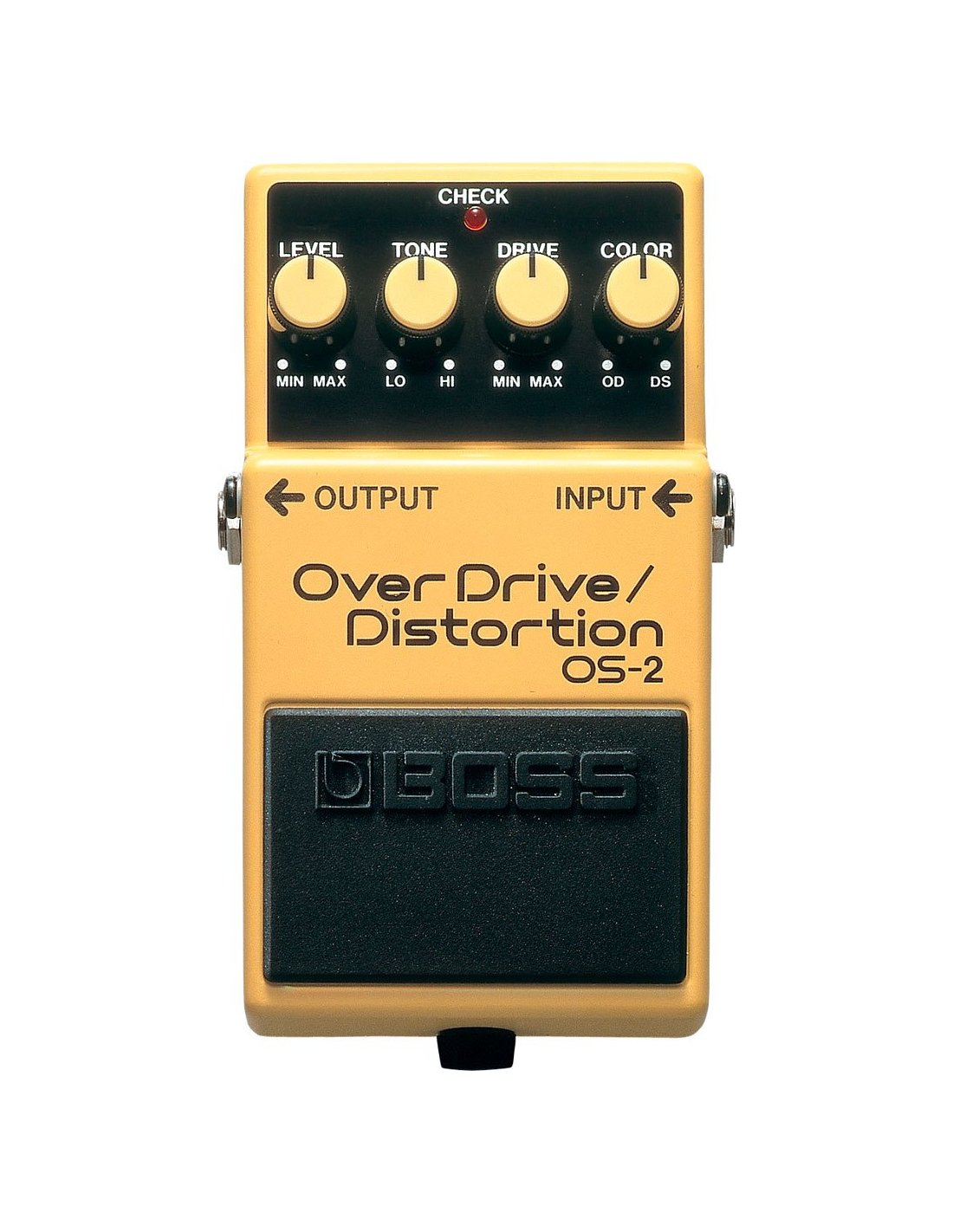 Boss OS2 Overdrive/Distortion Guitar Pedal. The Boss OS2 Overdrive/Distortion is a pedal overdrive/distorter for guitar. It is equipped with Level, Tone, Drive, Color (Od/Ds) controls