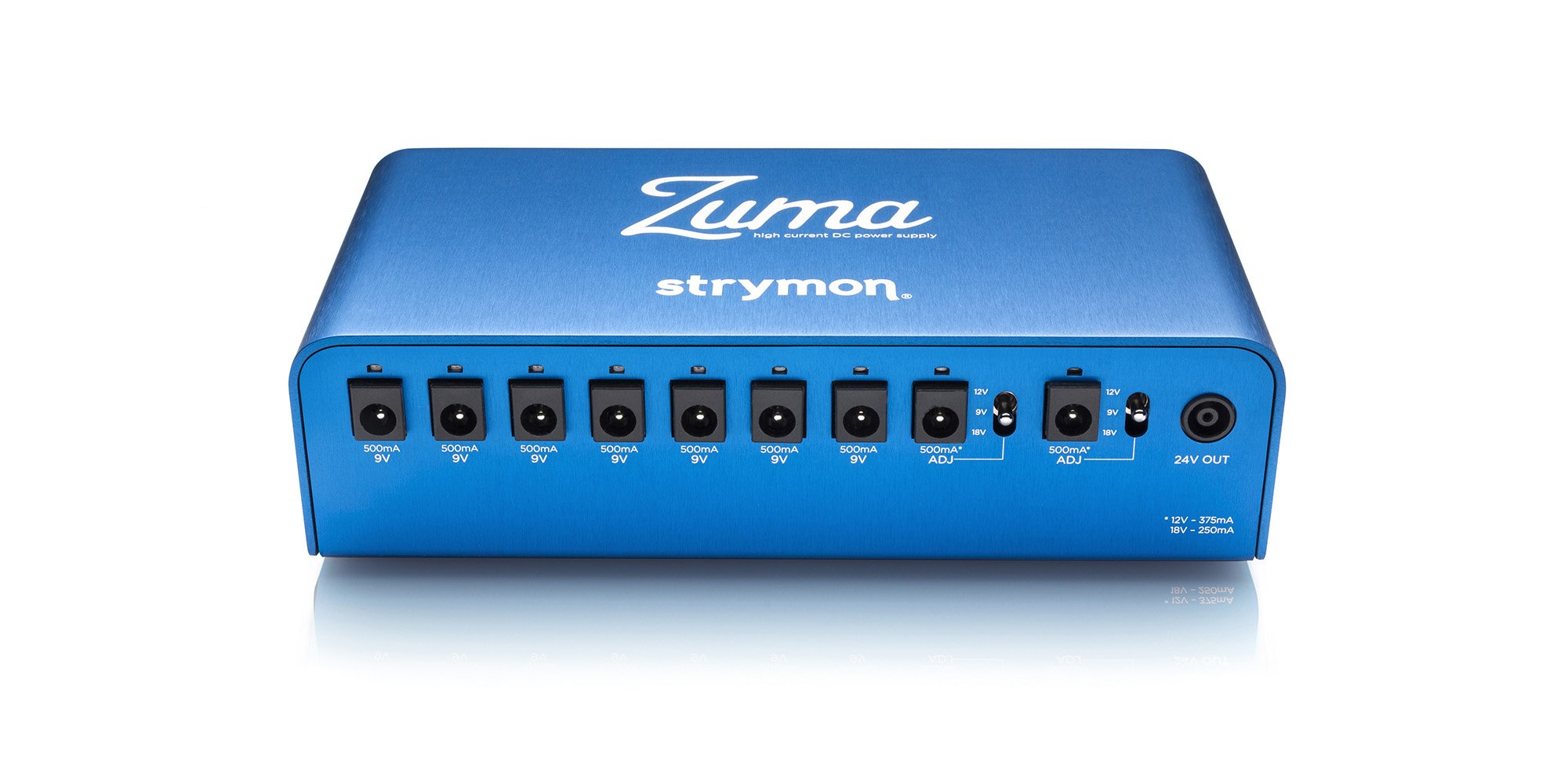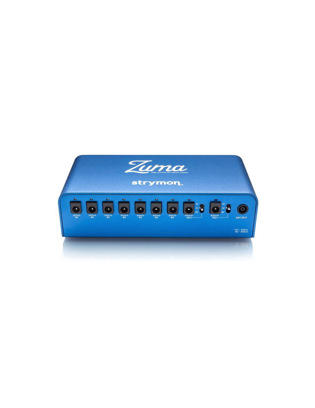 The Strymon Zuma Power Supply is a power supply for pedal effects. It is equipped with 9 individually isolated high current outputs at 9V DC and 500mA and a 24V output that allows you to connect additional outputs by connecting it to a Strymon Ojai. Two outputs allow you to select the voltage at 9, 12 or 18 V. It includes 9 connection cables
