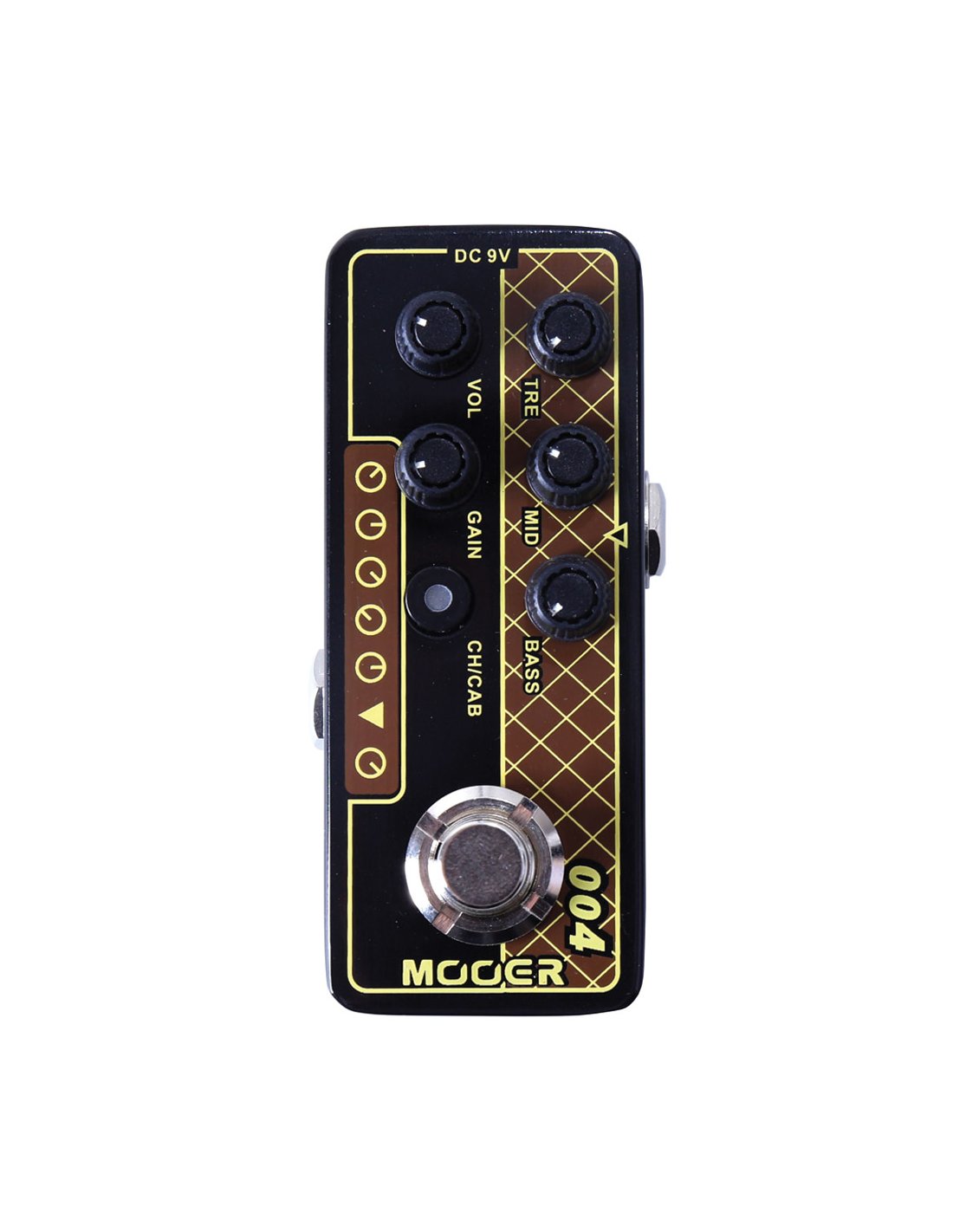 Mooer 004 Day Tripper Guitar Pedal. The Mooer 004 Day Tripper is a guitar pedal preamp modeled on the Vox AC30, true bypass amplifier. It is equipped with two completely independent channels, integrated speaker simulation function that can be activated or deactivated, two modes of operation/channel selection, Volume, Gain, Treble, Middle, Bass controls