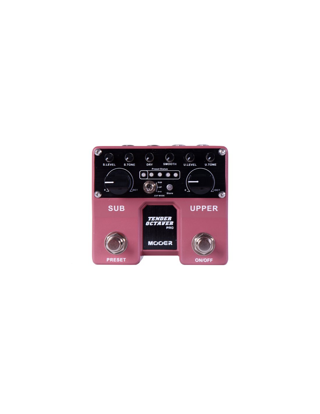 Mooer Tender Octaver Pro Guitar Pedal. The Mooer Tender Octaver Pro is a Twin Series guitar pedal octaver that also includes harmonizer, pitch shifting, whammy and chorus detune effects. It has stereo outputs and 4 user presets that can be stored and recalled. Two foot switches allow you to activate the effect and select presets