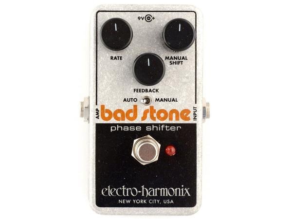 Electro Harmonix Bad Stone Phase Shifter Guitar Pedal. The Electro Harmonix Bad Stone Phase Shifter is a guitar pedal phase shifter based on the legendary Bad Stone. It is equipped with the Rate, Manual Shift, Feedback controls and the mini Auto/Manual switch. True bypass.