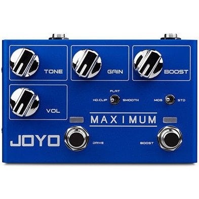 Joyo R-05 Maximum Overdrive Guitar Pedal. The Joyo R-05 Maximum Overdrive is a guitar pedal overdrive equipped with Volume, Tone, Gain, Boost controls, the switch to select Hard Clip/Flat/Smooth modes and the to select switch the Mosfet/Diode Clip modes. Two foot switches allow you to activate the effect and boost