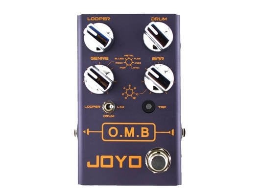 Joyo R-06 O.M.B. Looper/Drum Machine Guitar Pedal. The Joyo R-06 O.M.B. Looper/Drum Machine is a guitar pedal looper with built-in drum machine. It features 40 minutes of recording, Looper, Drum, Genre controls (Pop, Rock, Blues, Metal, Funk, Jazz, Latin), Bar, Tap Tempo button