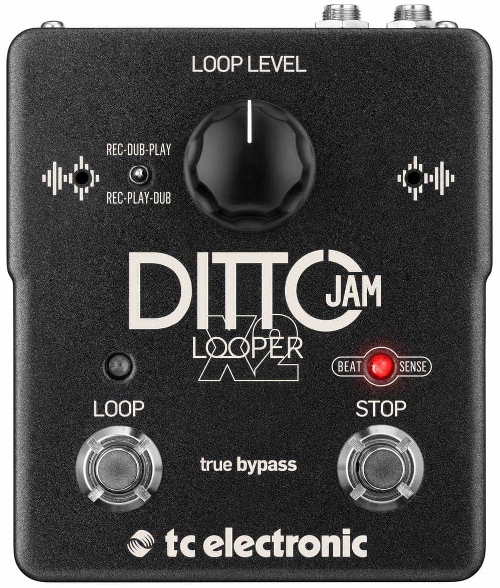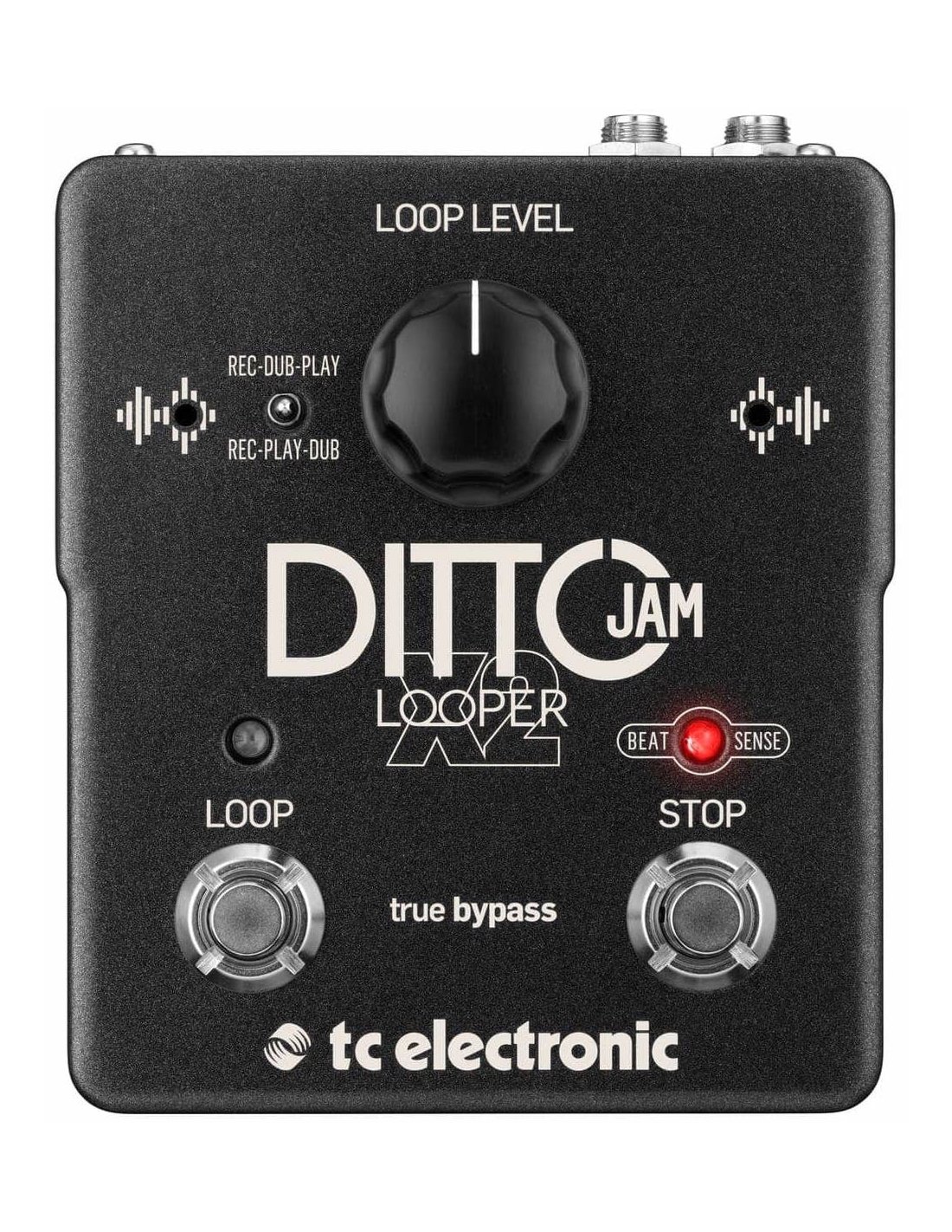 TC Electronic Ditto Jam X2 Looper Guitar Pedal. The TC Electronic Ditto Jam X2 Looper is a true bypass guitar pedal looper based on TC Helicon's Beat Sense technology that is able to recognize changes of pace and reproduce the recording always in time. It is equipped with internal and external microphones that automatically sense time