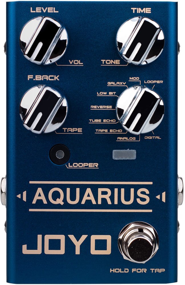 Joyo R-07 Aquarius Digital Delay Guitar Pedal. The Joyo R-07 Aquarius Digital Delay is a digital delay/looper guitar pedal. It is equipped with 8 different delay settings (Digital Delay, Analog Delay, Tape Echo, Tube Echo, Reverse Echo, Low Bit, Galaxy, Mod), Tap Tempo function, Looper (5 minutes)
