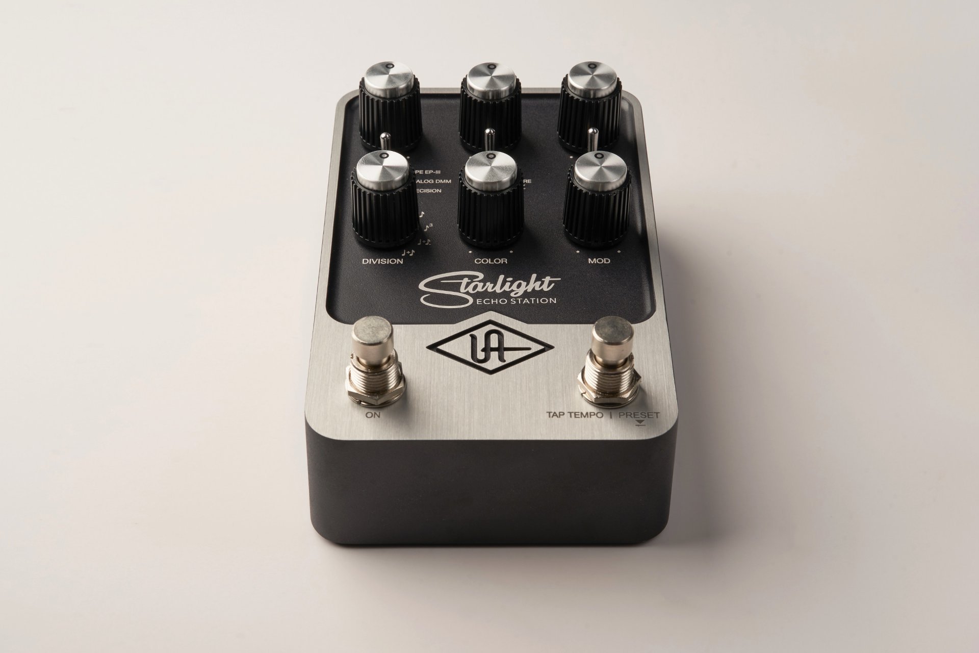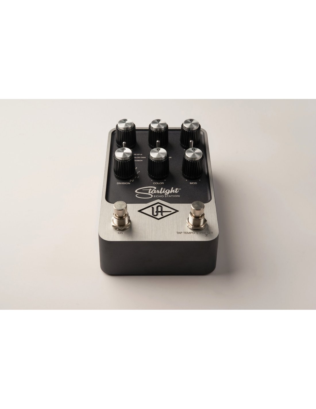 Stereo delay pedal with Tape, Analog and Digital effects, true or buffered bypass, Preset and Tap Tempo modes, downloadable effects and more Engineered and developed by the Universal Audio team, the Starlight Echo Station UAFX boasts a powerful dual processor architecture to provide more classic and authentic Tape, Analog and Digital Delay effects that can be found in a stompbox. From echo tapes and bucket brigade analog delay, to 80s digital repeats, the Starlight Echo Station packs three iconic delay sounds into a single, finely crafted pedal built to last for decades to come.
