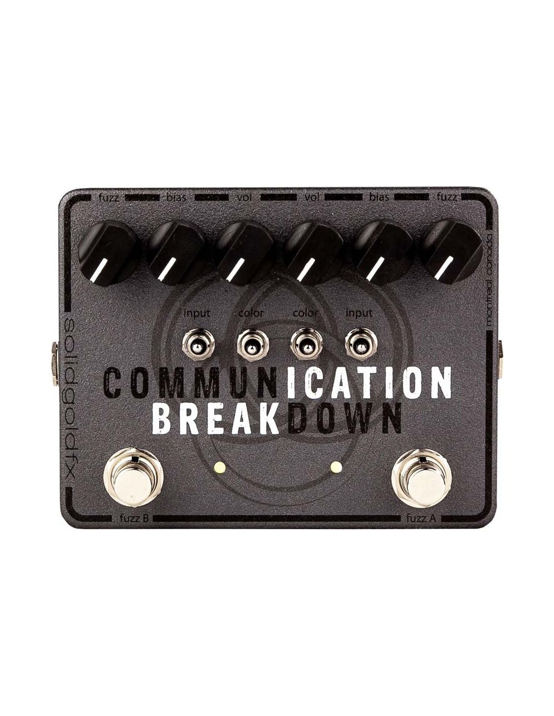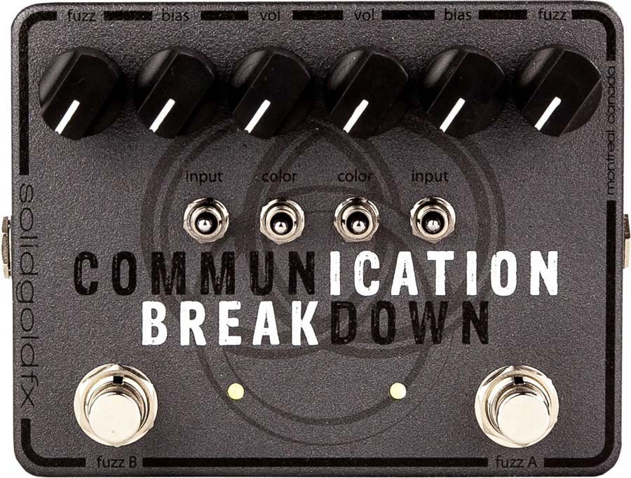 Solid Gold FX Communication Breakdown is a Fuzz pedal for electric guitar with two separate vintage-style fuzz circuits. It's a versatile pedal for those looking for sixties or seventies rock-style sounds