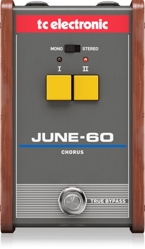 TC Electronic June 60 V2 is a vintage-style chorus pedal with an analog Bucket Brigade circuit and true bypass operation. It is inspired by the chorus present in one of the most famous synthesizers of the 80s with adjustable double LFO