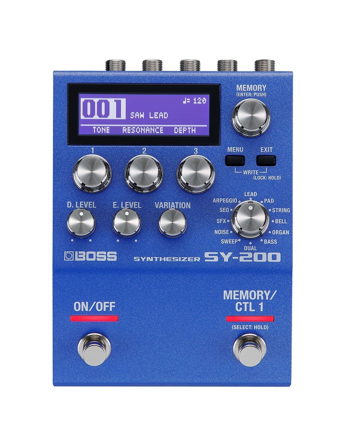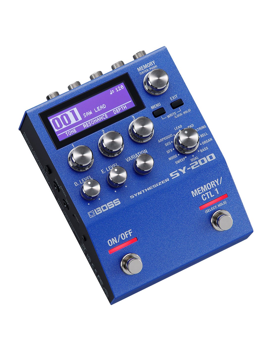 BOSS SY200 GUITAR SYNTH is a digital synthesizer for guitar and bass in stompbox format. The technical features include 128 memory slots for saving sound presets, 12 selectable synth categories (Lead, Pad, Strings, Bell, Organ, Bass, Dual, Sweep, Noise, Sfx, Seq, Arpeggio) for a total of 171 sounds that can be used and customized through 3 adjustment parameters, control display and function keys, footswitch for activating the pedal and Memory/CTL 1 for changing sound presets and integrated memory, the possibility of connecting additional pedals such as expression or volume pedals through connections via TRS send/return jack, and MIDI.