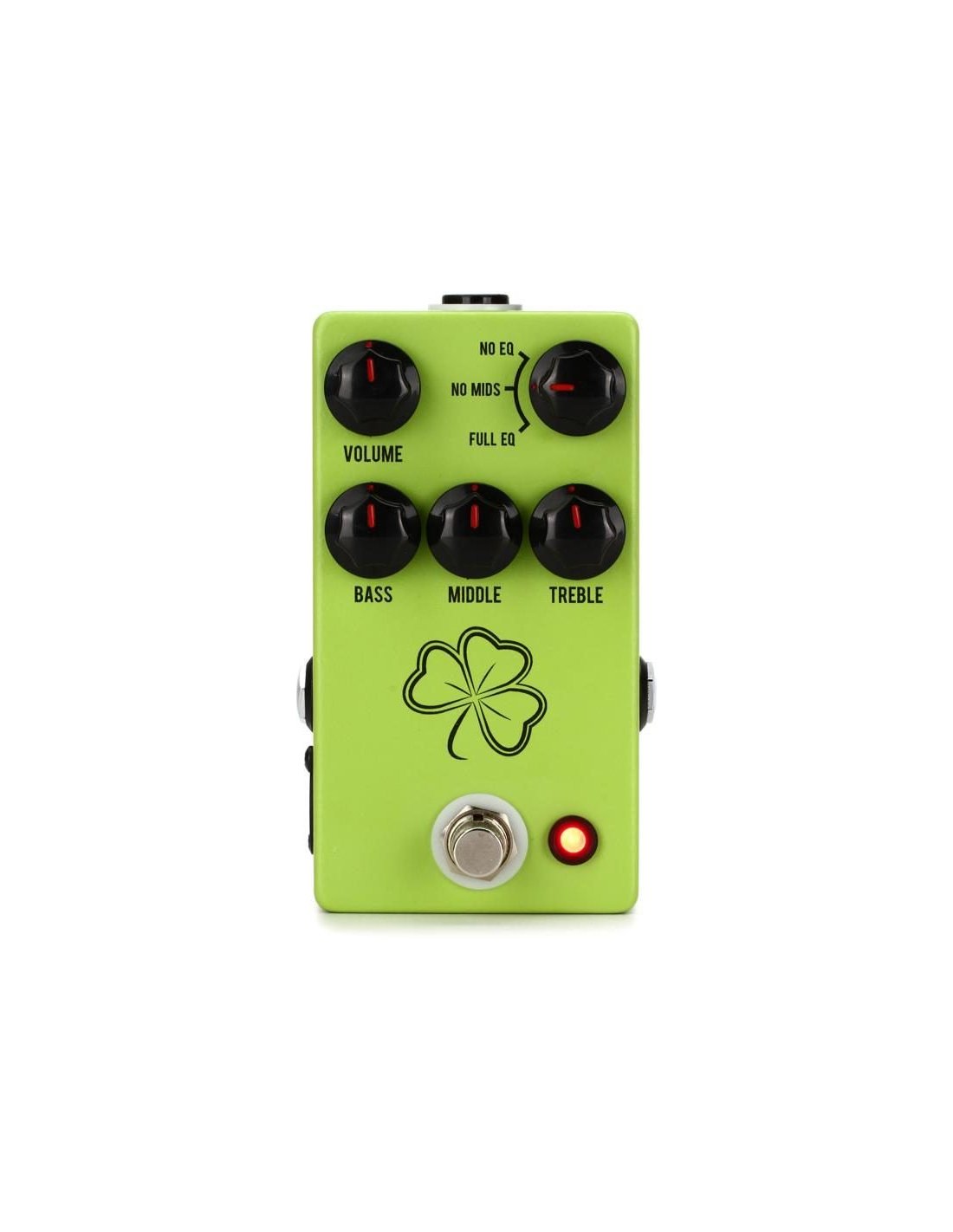 JHS Pedals The Clover Preamp is a pedal-powered preamp/boost. It is equipped with volume controls, three-band equalization, selector for full, two-band or bypassed tonestack. On the sides it is equipped with a switch to attenuate the lowest frequencies and an XLR output, dedicated to bass or acoustic guitar that allows you to connect live to a bench or an audio