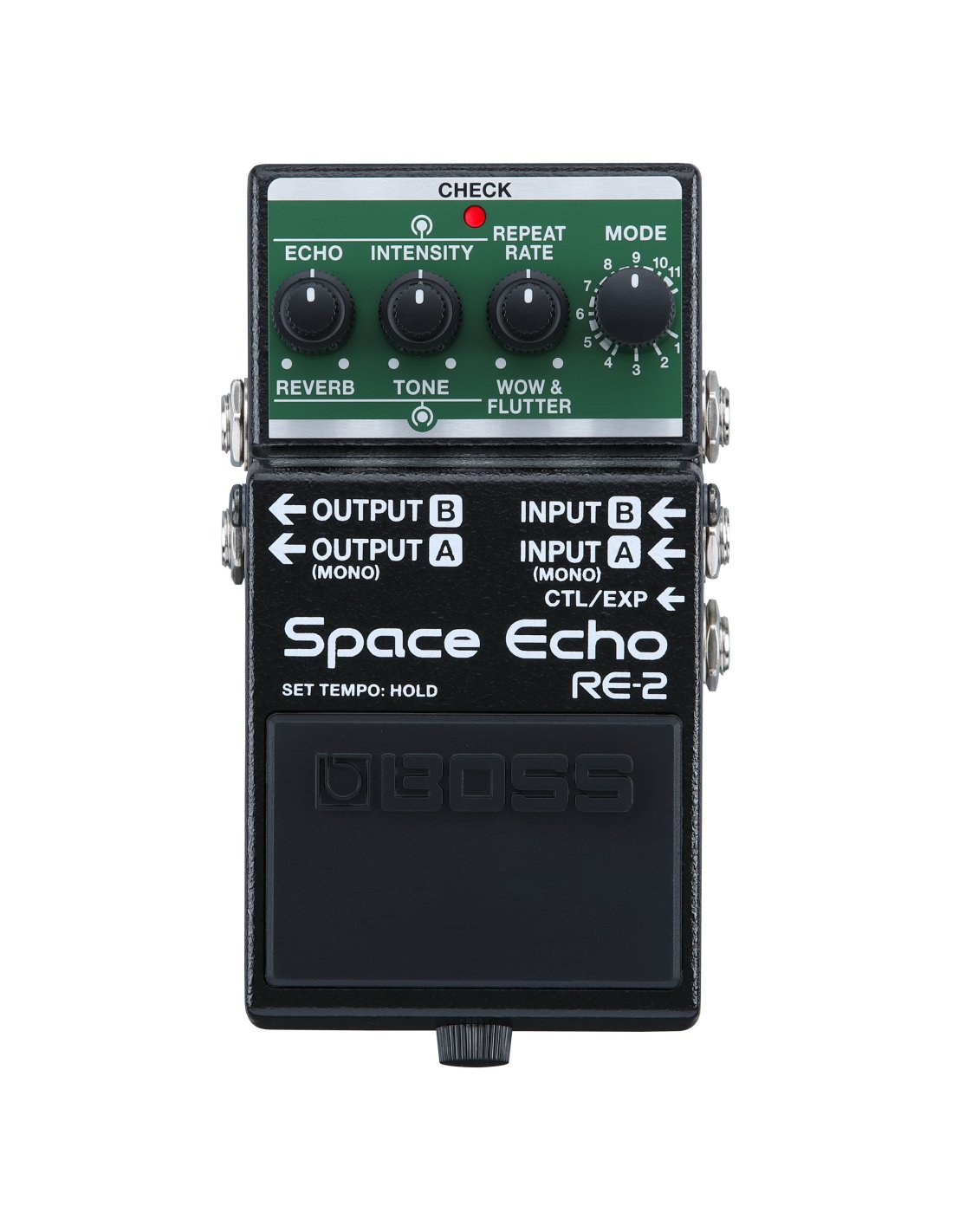 highly musical sonic peculiarities, this classic ribbon unit has continued to inspire musicians, producers and composers for more than four decades. With RE-2, the authentic Space Echo sound and behavior are now available for the first time in the popular BOSS compact series.