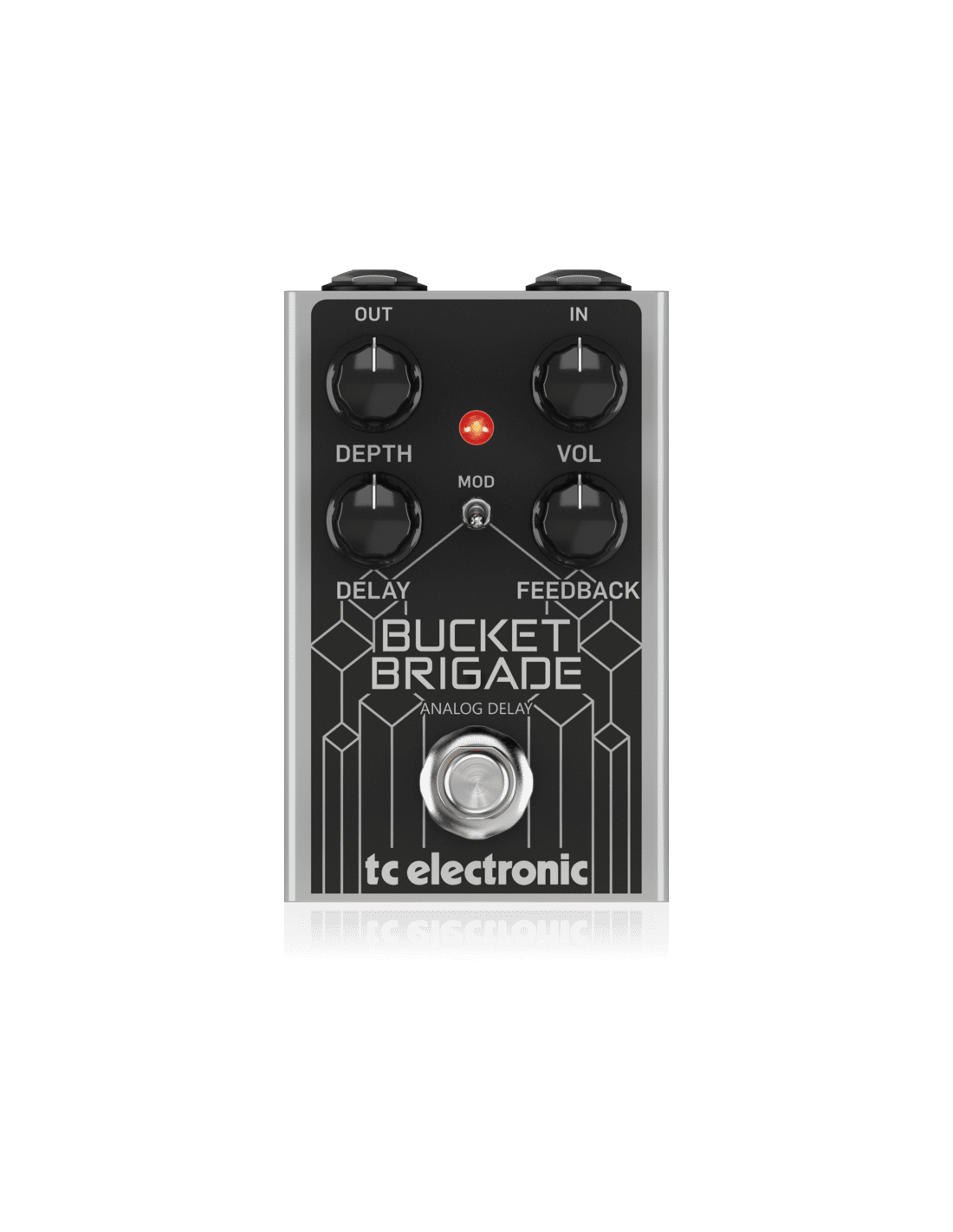 TC Electronic Bucket Brigade Analog Delay is a pedal with a delay effect equipped with an analog Bucket Brigade circuit and true bypass operation. It provides echoes with a delay of up to 600ms that can be enhanced with a Chorus effect thanks to the Mod switch and Depth control