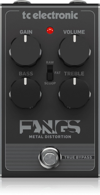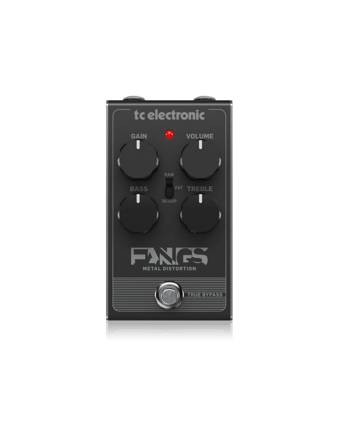 TC Electronic Fangs Metal Distortion is a distortion pedal with true bypass operation, equalization controls for low and high frequencies and a switch for digging or pushing mids. It is a pedal suitable for lovers of distorted high-gain sounds