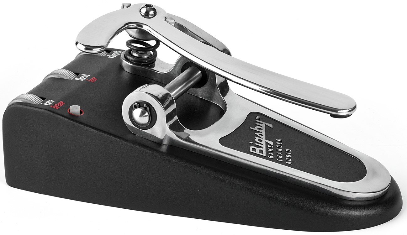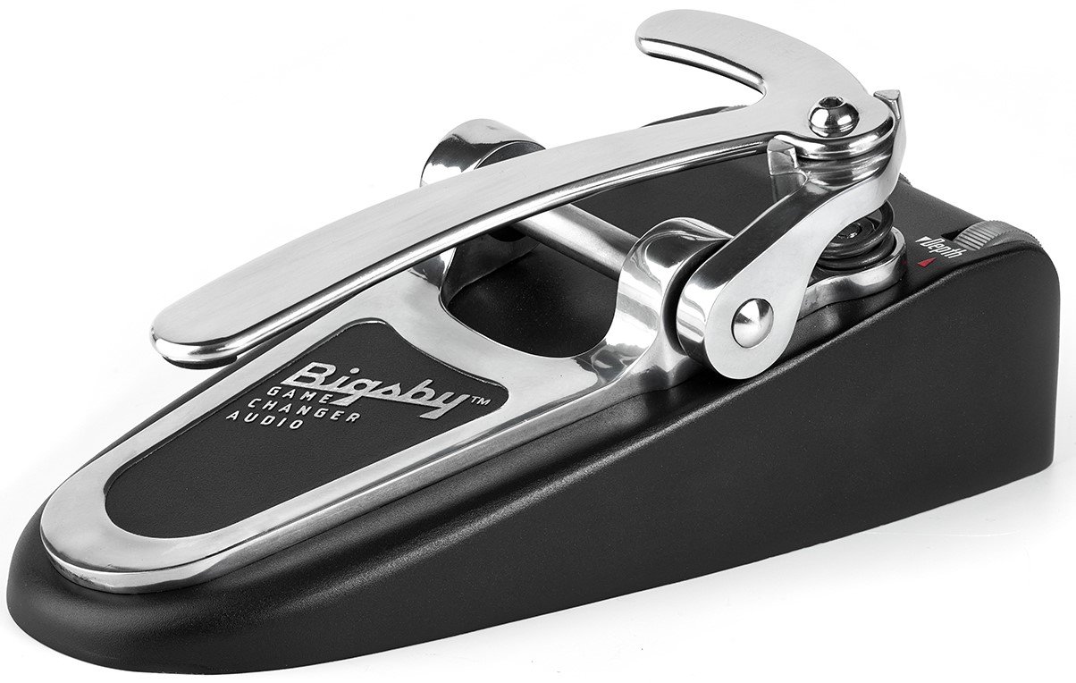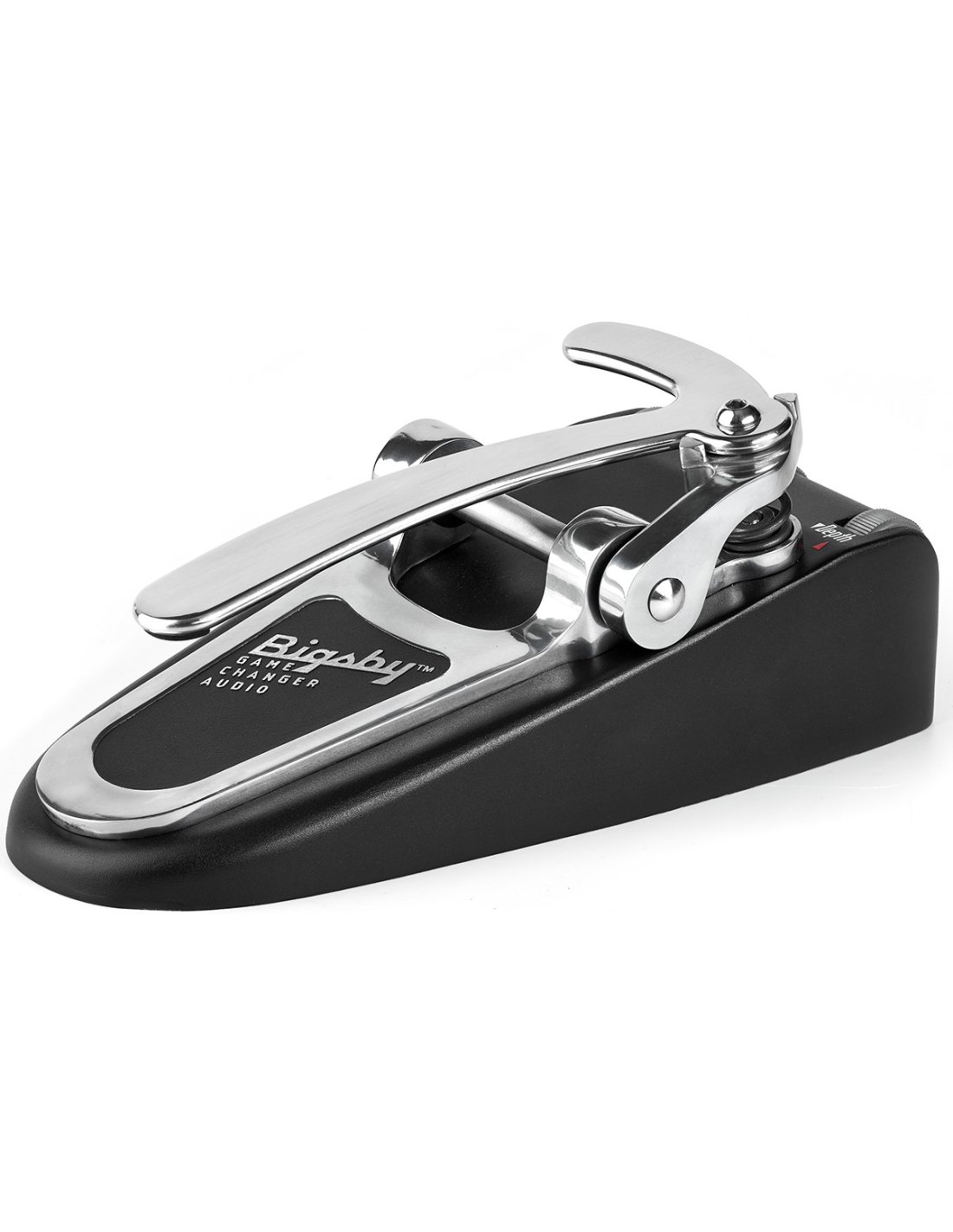 The Bigsby Vibrato is a Gamechanger polyphonic pitch shifting pedal that reproduces the sound of a manual tremolo lever. It features Rate/Detune, Blend/Tone, and Depth controls, an unbalanced 1/4" TS input and output, and a mini TRS type B MIDI connector