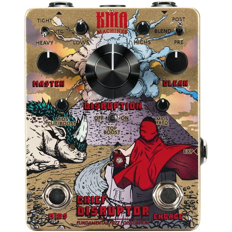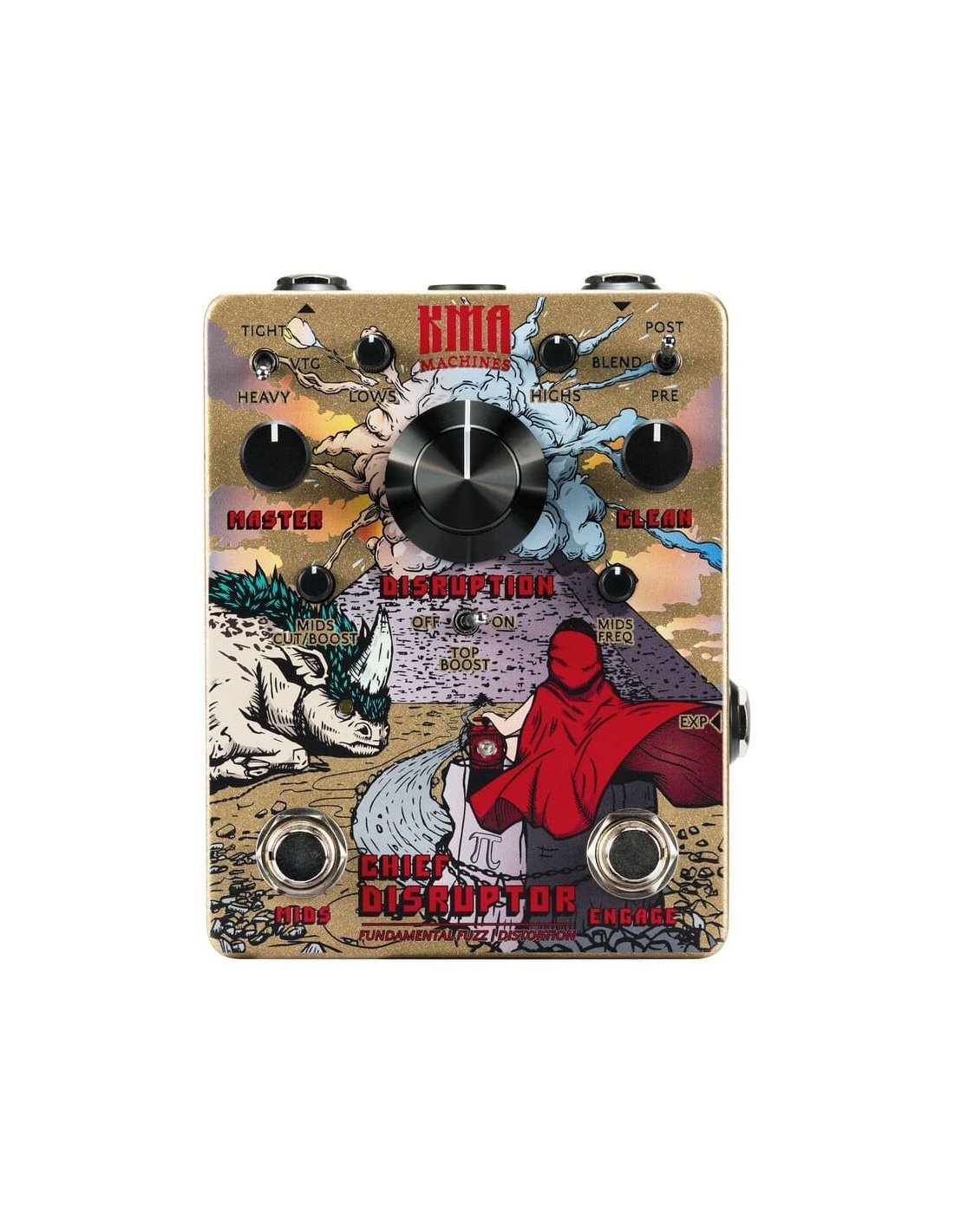 KMA CHIEF DISRUPTOR is a Fuzz/distortor guitar pedal. The technical characteristics include 3 different types of Gain selectable by switch (Tight, vintage, heavy), Clean Blend configurable in Pre or Post, 3-band Eq (Lows, Highs, Mids) with medium frequency control and dedicated footswitch. Top Boost for a boost on harmonics.