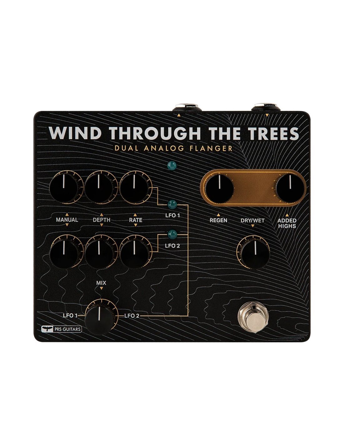Il PRS Wind Through the Trees è un dual Flanger con controlli Manual, Depth e Rate separati, più dei controlli Regeneration e Added Highs in comune per i due flanger.